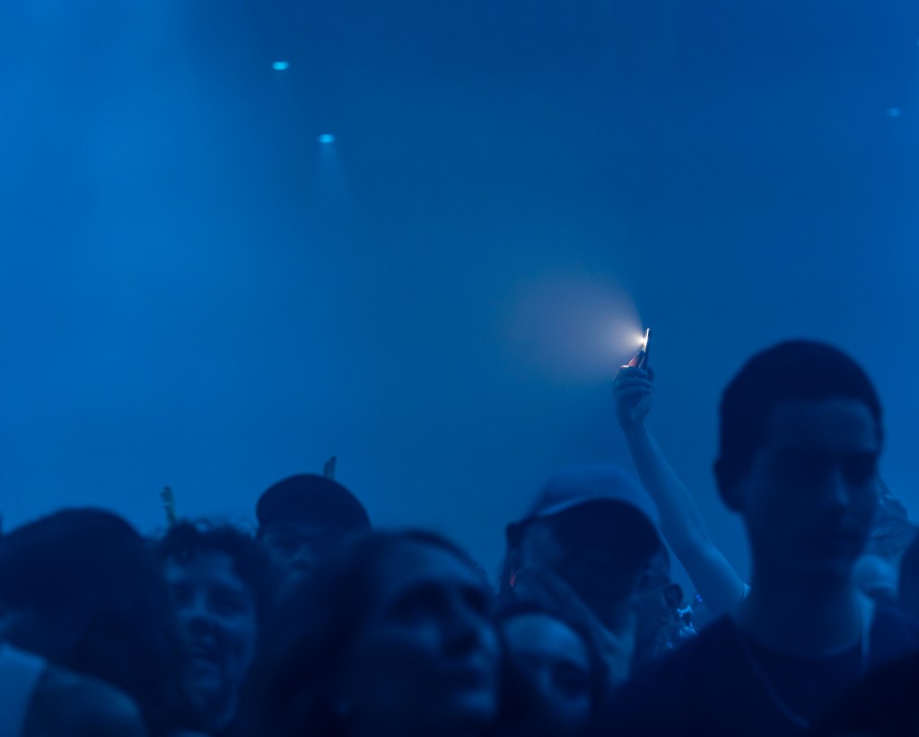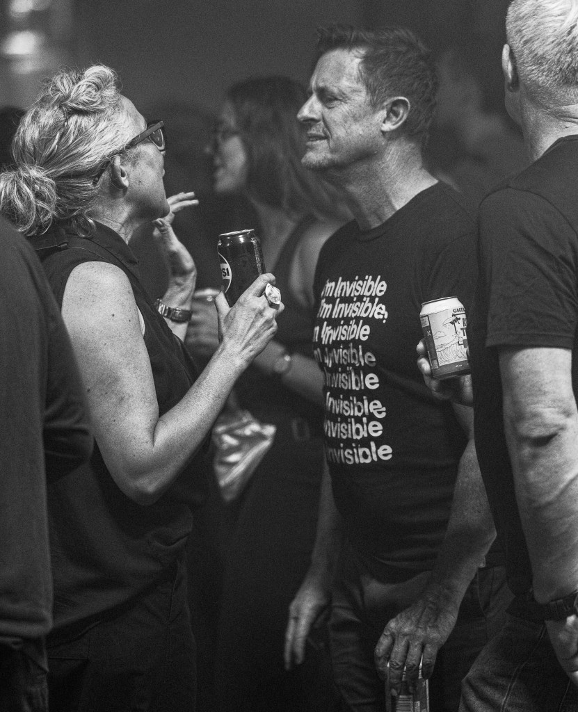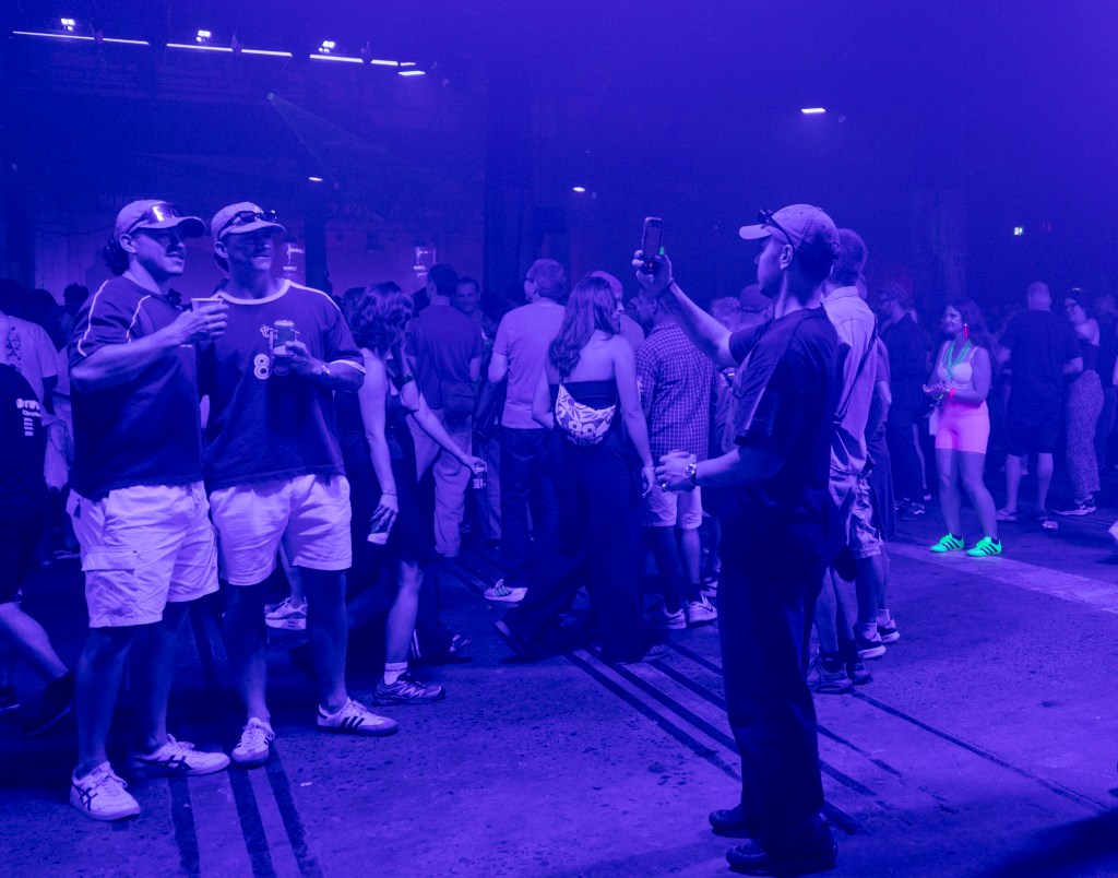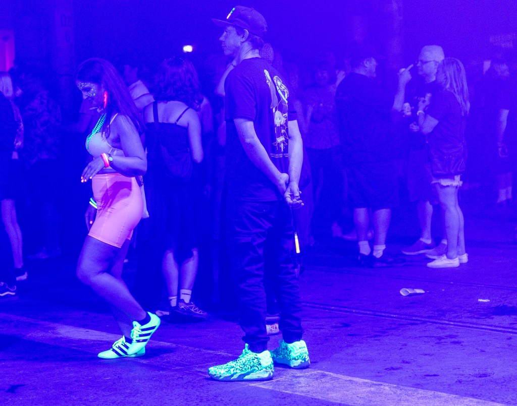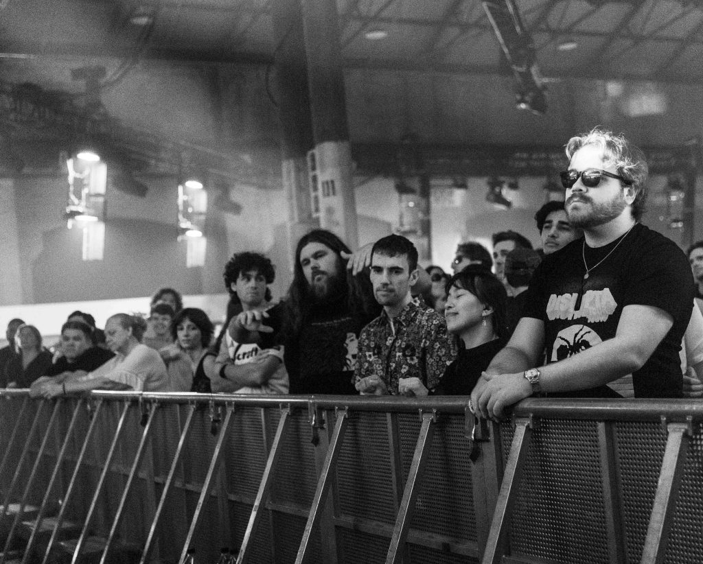 Karl Hyde et Rick Smith restent en grande partie cachés derrière des écrans et des appareils géants, n'apparaissant qu'occasionnellement et brièvement dansant avant de disparaître à nouveau dans les machines. Les photographier s’avère difficile, mais cela semble presque accessoire. La présence d'Underworld n'a jamais été autant une question de visibilité qu'une question d'immersion, et la foule remplit le reste. De l'homme qui porte une chemise qui dit « Je suis invisible » à Vern Posant fièrement à côté des graffitis portant son nom, devant un danseur aux vêtements clairs et aux arcs de yo-yo tournant, le public prend part au spectacle.