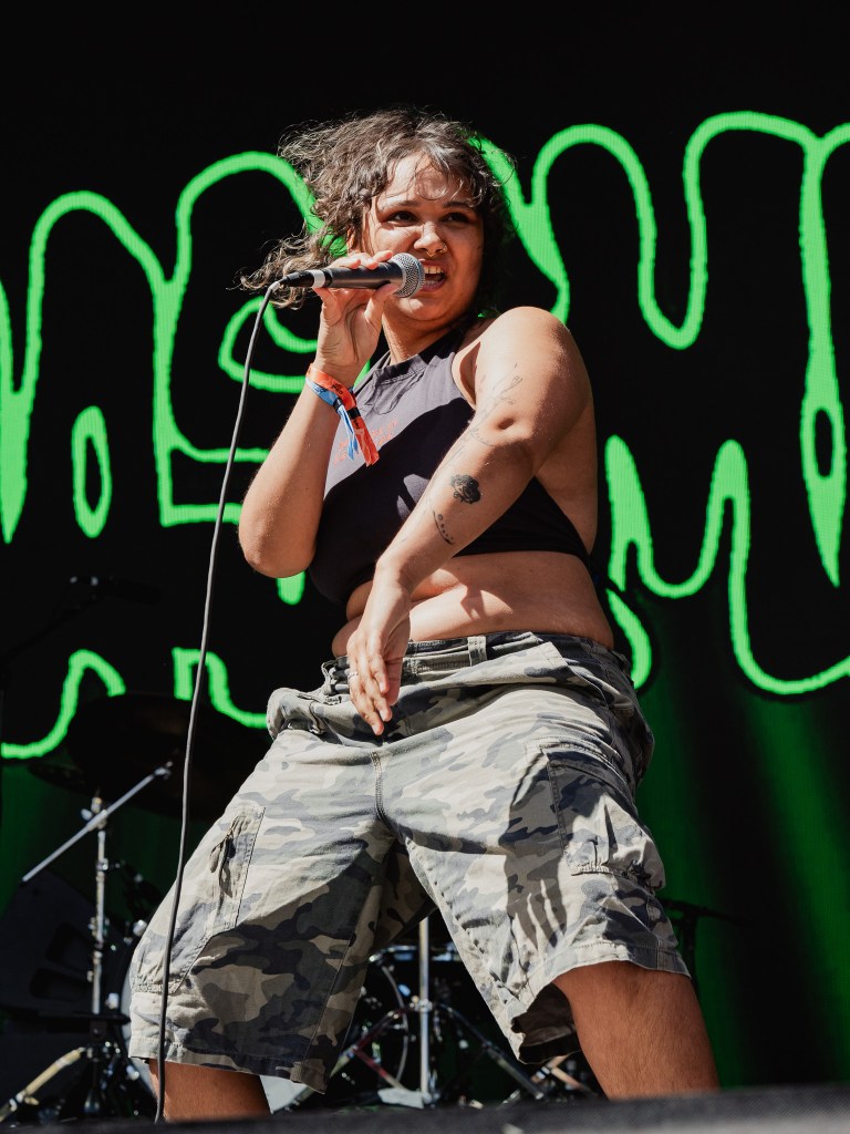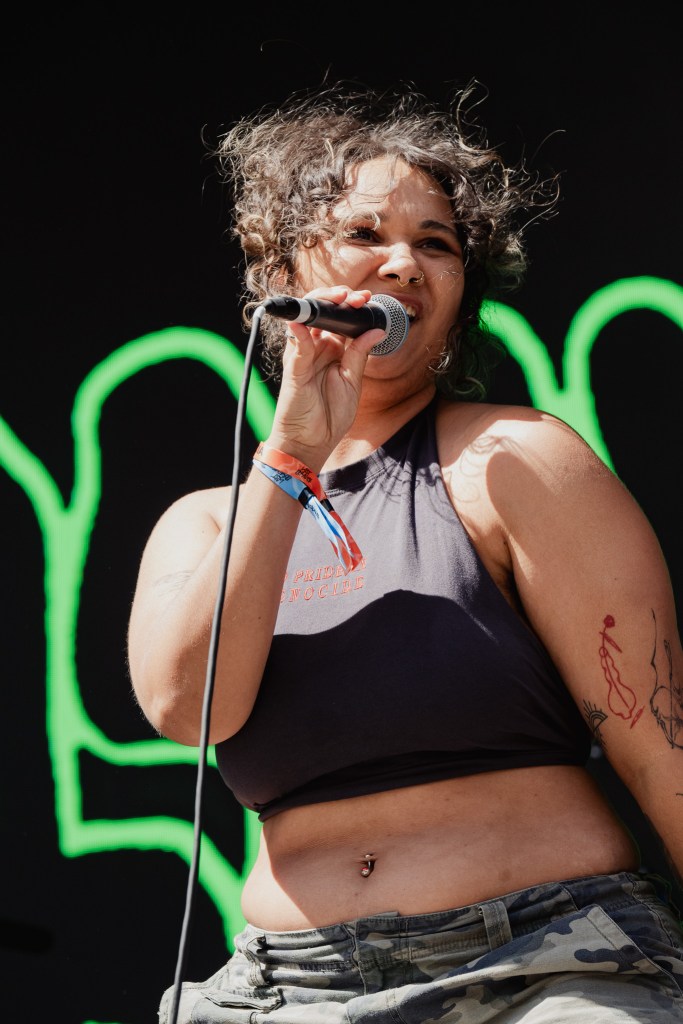 BADASSMUTHA a livré une rencontre éclectique entre soul et alt-pop avec un charisme non filtré, l'artiste de Githabul, Migunberri Yugumbeh équilibrant vulnérabilité et humour avec des morceaux comme « DIZZY » (« Je suis une oie idiote ! »).