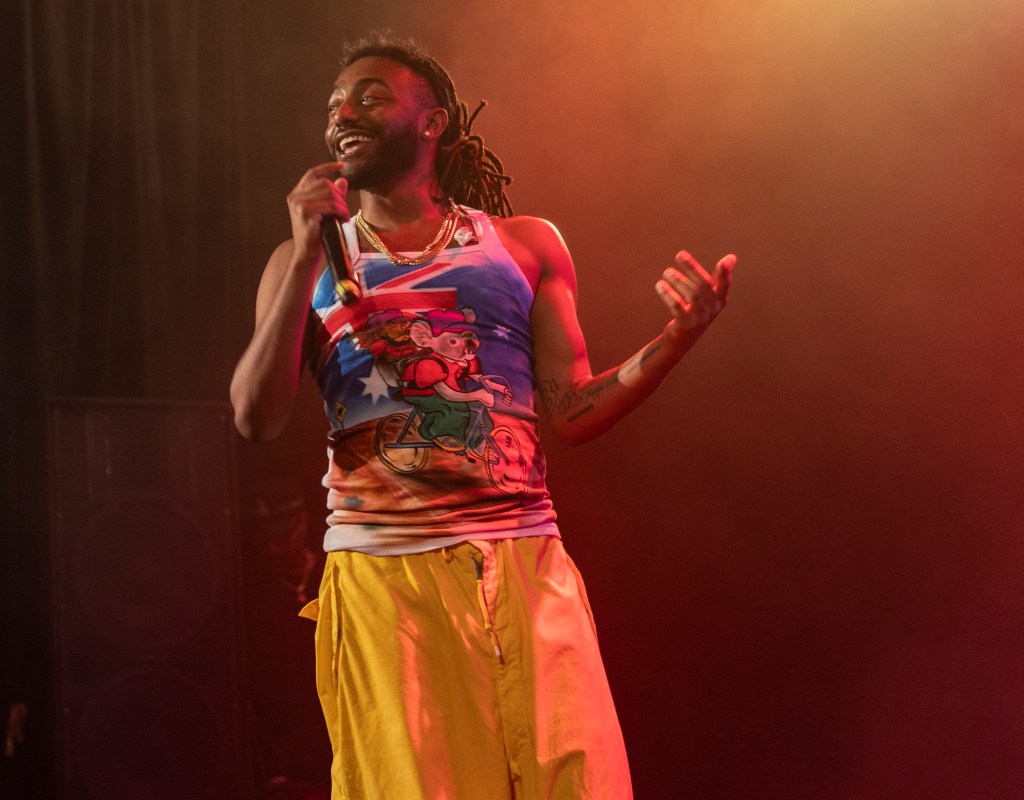 Aminé apporte son Tour de Danse Ce soir, le spectacle arrive à Sydney et investit le Metro Theatre avec un décor qui met l'accent dans une égale mesure sur le mouvement, la couleur et la réflexion. Avant même qu’il n’entre en scène, il règne une certaine décontraction dans la salle ; l'anticipation est caractérisée à la fois par le rythme et par l'appel.