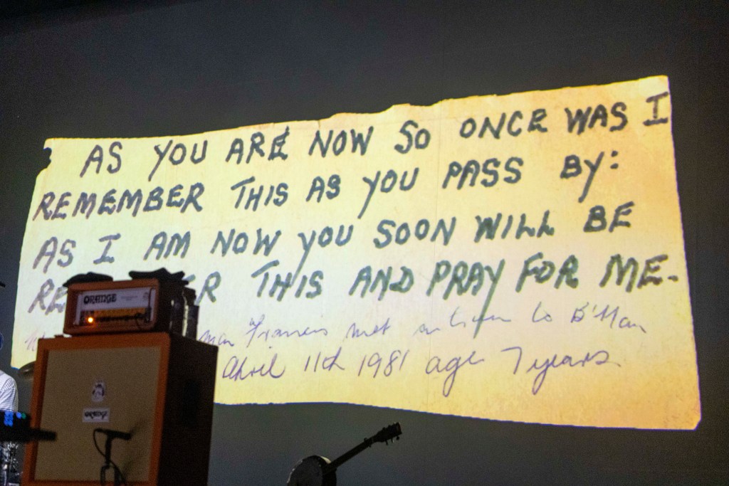 Les histoires continuent de se fondre dans la musique. La façon dont tu es est introduit par un poème donné à Healy par un homme plus âgé dans un train alors qu'il voyageait avec sa mère. La note originale est projetée à travers le groupe alors que Dunlop frappe des lignes irrégulières et enfouit sa tête dans l'un des imposants amplificateurs Orange. Healy se souvient de Millport et de la centrale nucléaire imminente, des premières répétitions au Horseshoe Bar de Glasgow et de la résistance à laquelle ils ont été confrontés en essayant de persuader leur label de le sortir. Pourquoi il pleut toujours sur moi ?. Le groupe l'a suggéré comme single à Wimbledon car il pleut toujours à Wimbledon – sauf que cette année, il n'a pas plu. Mais ils ont été rachetés à Glastonbury en 1999 lorsque les cieux se sont ouverts au milieu d'une chanson, scellant ainsi la percée du groupe. Une autre diapositive apparaît : une cassette avec l'inscription Cherpris pour un ami qui, selon Healy, n'était pas impressionné par ce geste. C'est drôle, conscient de soi et étrangement perspicace. En fin de compte, cela ressemble à une archive vivante, montrant comment de petits moments à moitié terminés se solidifient en chansons durables. Cela nous rappelle également combien de temps s'est écoulé depuis la dernière fois que Travis a passé du temps réel en Australie, et à quel point ce serait bienvenu si cette visite n'était pas encore deux décennies à venir.