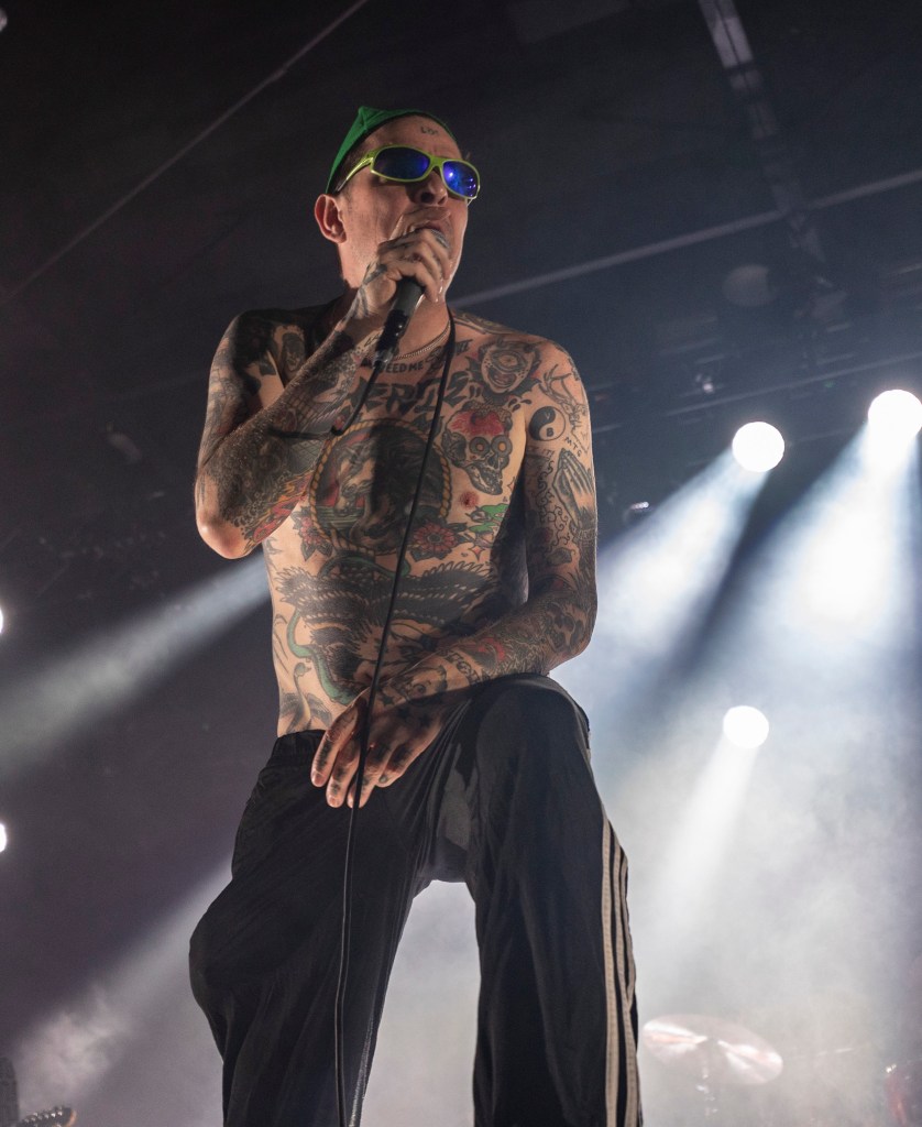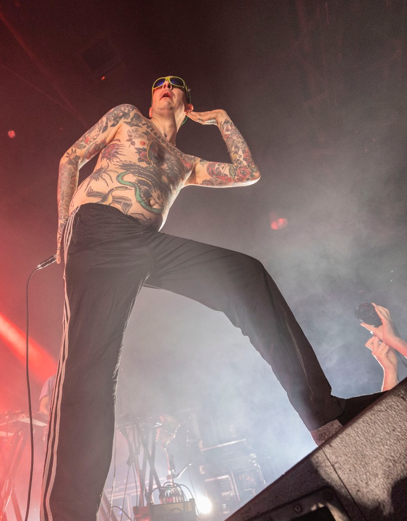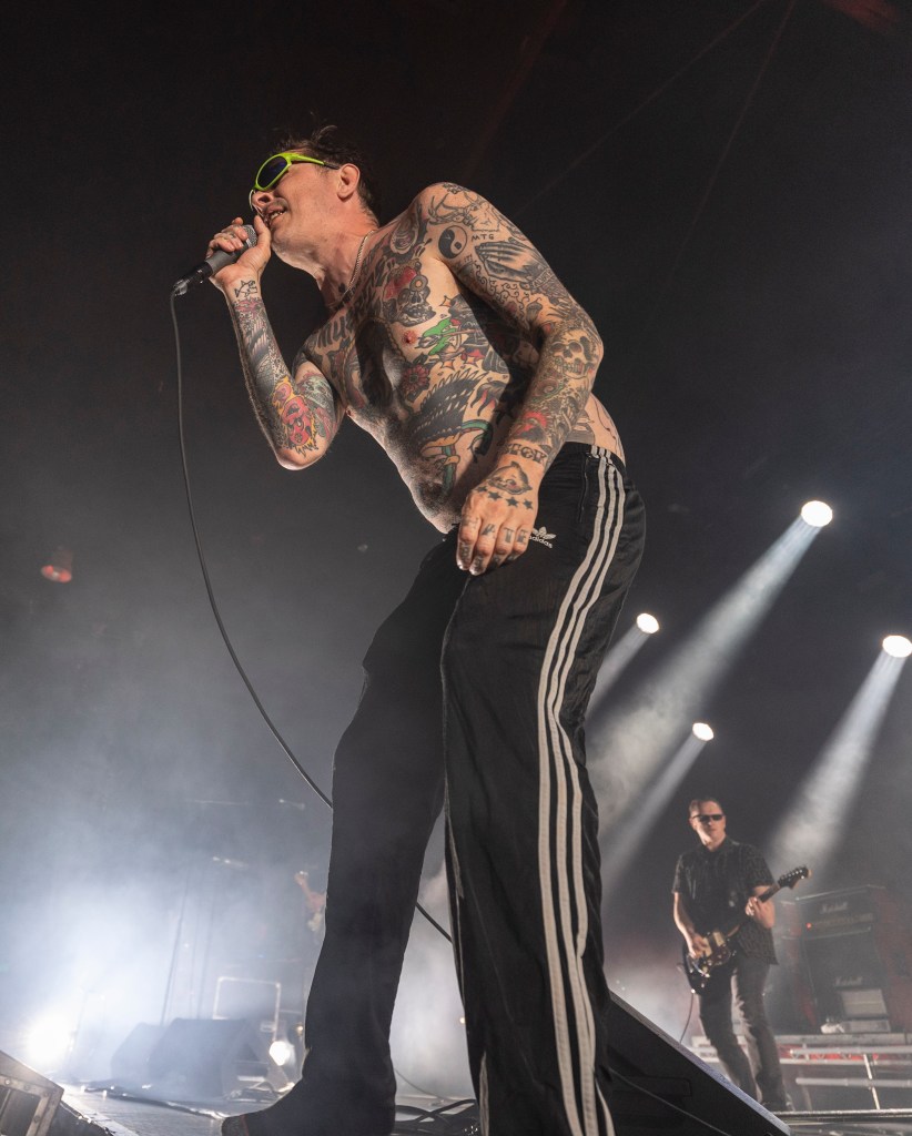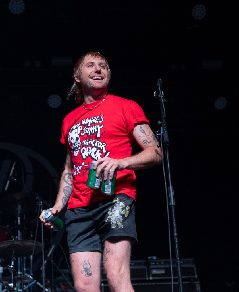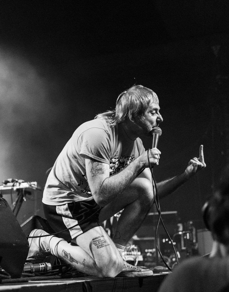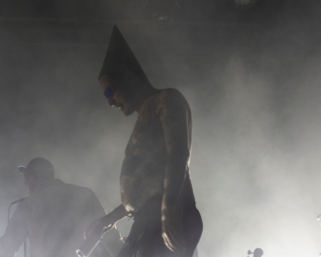 À l'époque Les gars du Viagra Quand on entre sur scène, la salle est déjà trempée, physiquement et émotionnellement. Leader Sébastien Murphy arrive en pantalon de survêtement, torse nu, chapeau conique vert vif, ventre de bière et tatouages, ressemblant moins à un leader qu'à un homme tiré directement de la foule – et pourtant complètement en contrôle. Il se déplace comme un maître de piste grotesque, parcourant la scène avec une aisance conflictuelle et transformant son corps en une partie de la satire. Entre monologues grognants et voix grinçantes, Murphy s'insurge contre l'autoritarisme, la paranoïa et les postures machistes, et embroche le sectarisme avec des quantités égales de bile et d'humour. Malgré le chaos, le groupe reste brutalement ensemble, combinant explosions de saxophone et grooves industriels en quelque chose d'étrangement discipliné – une performance qui se nourrit d'inconfort, de confrontation et de contrôle et atterrit exactement à sa place.