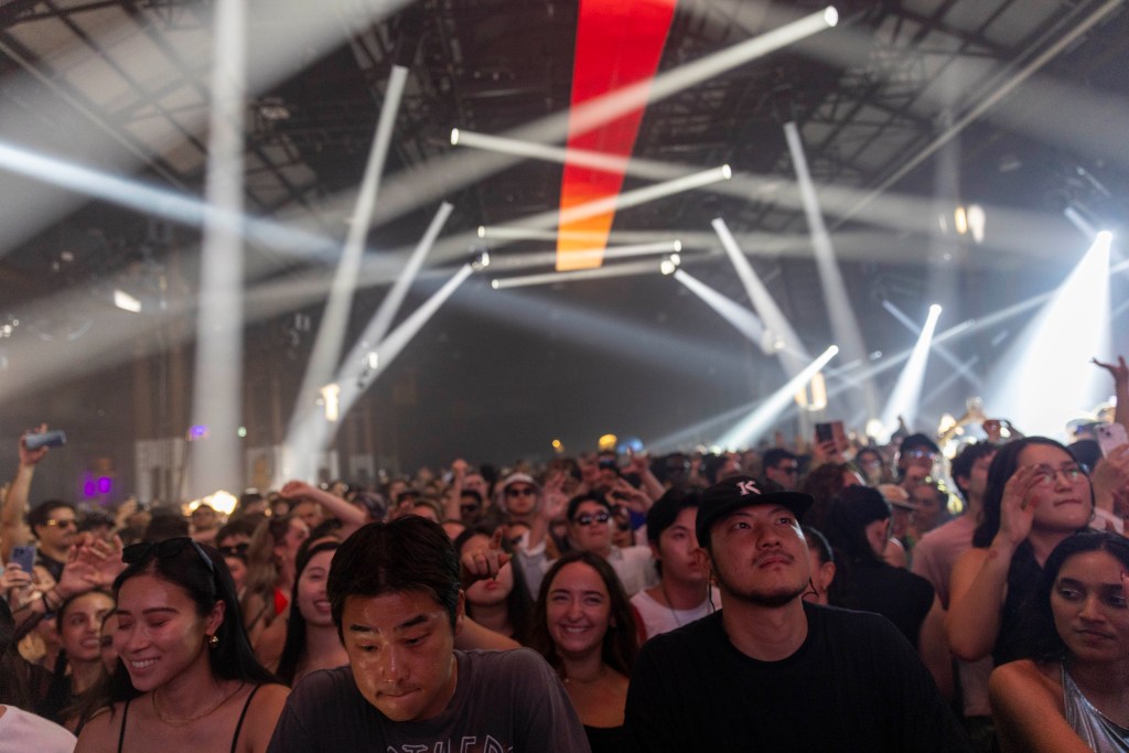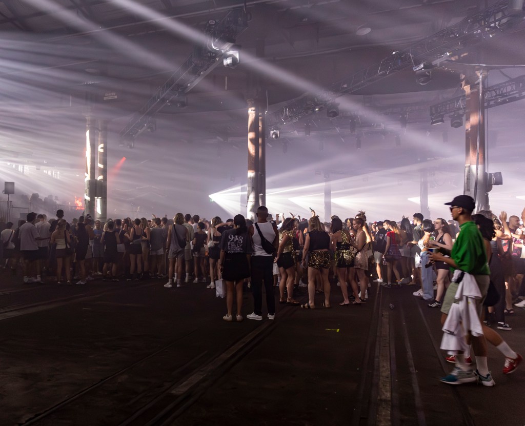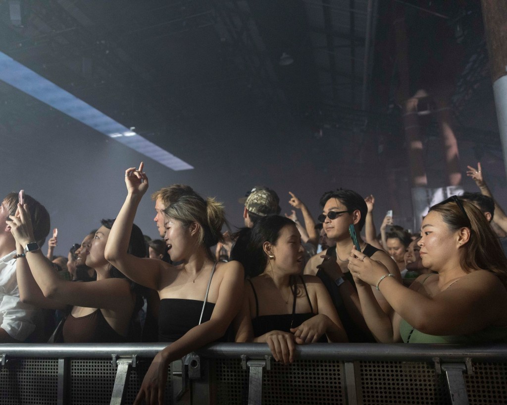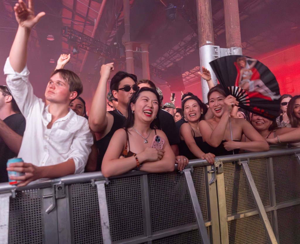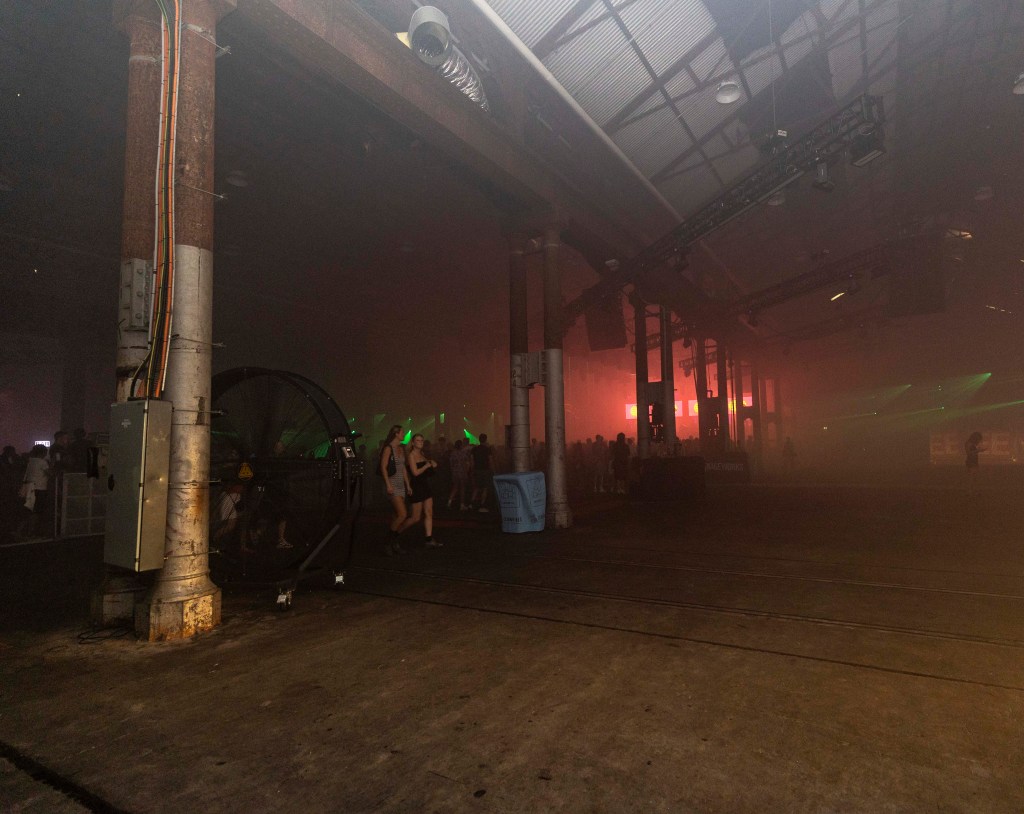 Peggy Gou pénètre dans le vaste ventre industriel de Carriageworks et met immédiatement la pièce en mouvement. L'ancien atelier ferroviaire semble taillé sur mesure pour ce genre de nuit : béton, acier et carrosseries bougent à l'unisson tandis que Gou s'installe dans un décor où les valeurs défilent au fil des éclairs.