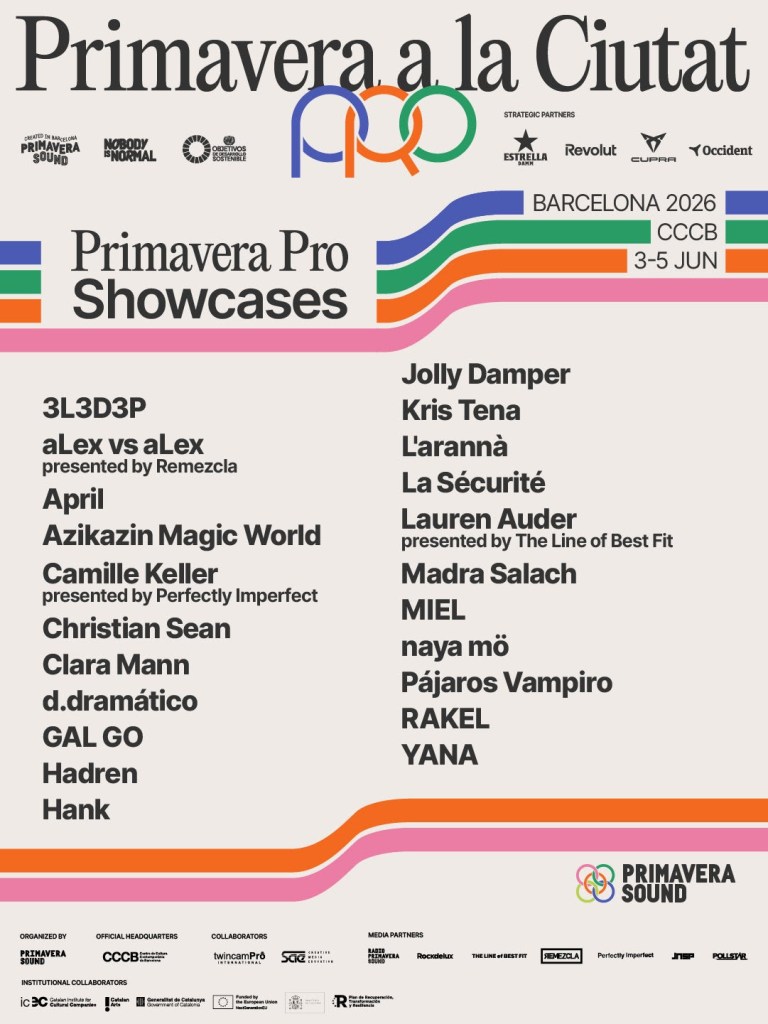 Dans le cadre de Primavera a la Ciutat, Primavera Pro 2026 accueillera une vingtaine de concerts gratuits avec entrée gratuite au CCCB. Le programme reste à la fois culturellement diversifié et équitable entre les sexes, mettant en vedette des artistes d'Argentine, de Belgique, du Canada, de Catalogne, de Corée du Sud, d'Équateur, des États-Unis, de France, du Guatemala, d'Irlande, d'Islande, du Mexique, de Pologne, du Portugal et du Royaume-Uni. Les artistes catalans seront également à l'honneur, reflétant l'engagement de l'événement à renforcer la scène locale tout en facilitant les échanges mondiaux.