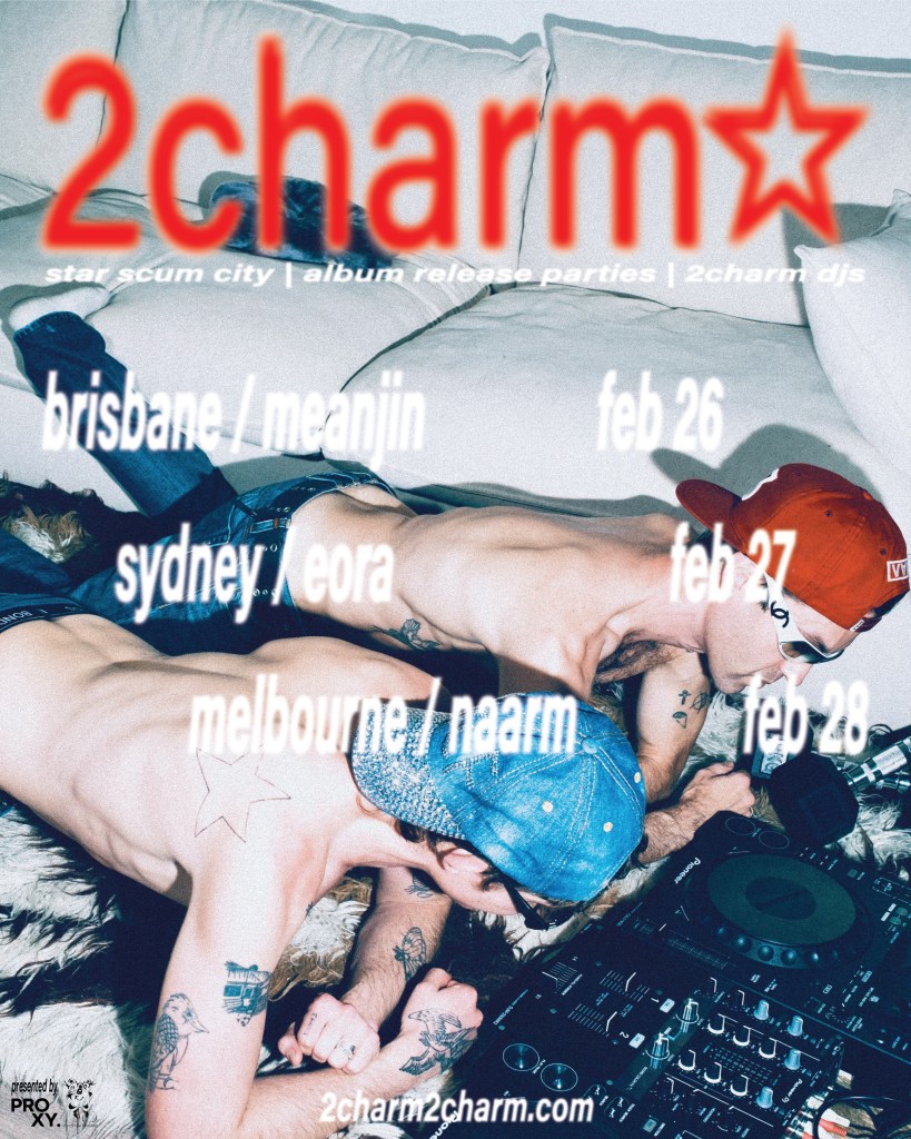 2charm a sorti son premier album Ville d'écume étoiléeun album de neuf titres qui positionne le duo dans un cadre pop orienté club caractérisé par le mouvement, l'identité et l'élan de fin de soirée. La sortie accompagne la vidéo du morceau phare « Girls » et coïncide avec une série de concerts à guichets fermés à Brisbane, Sydney et Melbourne.