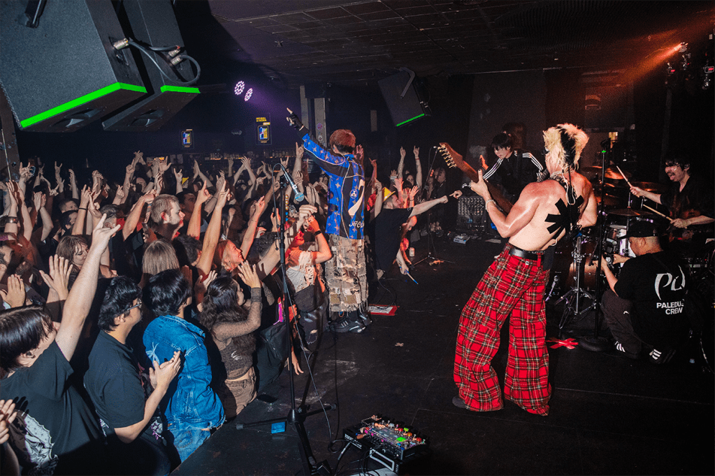 Les innovateurs japonais Paledusk ont apporté leur fusion volatile de metalcore, industriel, nu-metal et EDM à Stay Gold Melbourne, offrant un set défini par des riffs percutants et un mouvement constant. Depuis qu'ils ont quitté Fukuoka avec leur EP révolutionnaire de 2020 Amusez-vous à parlerLe groupe a acquis la réputation de briser les frontières des genres et de pousser la musique heavy vers de nouveaux territoires.