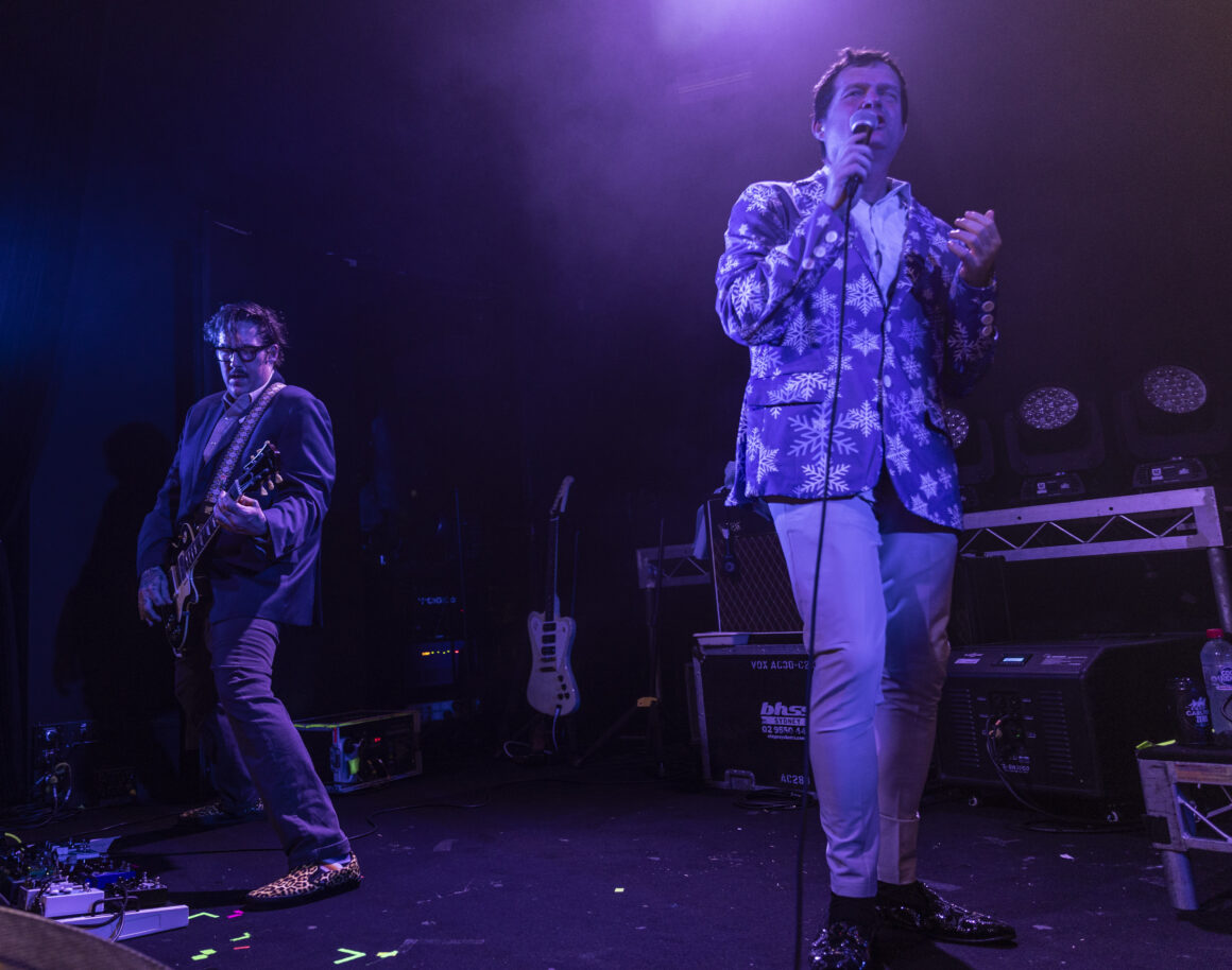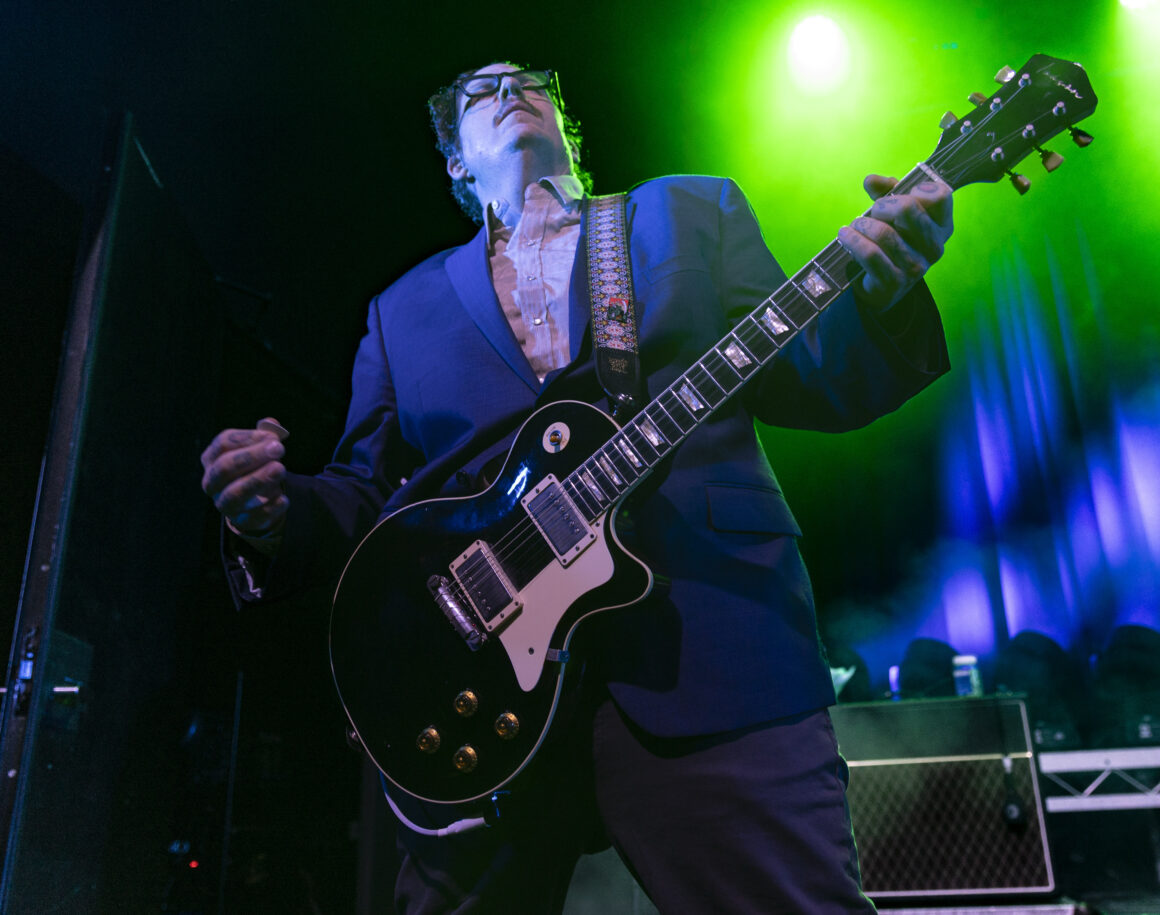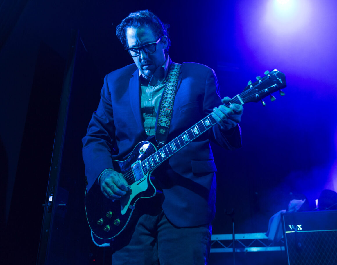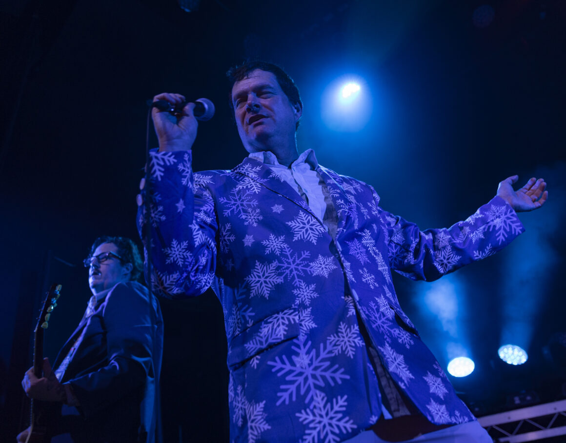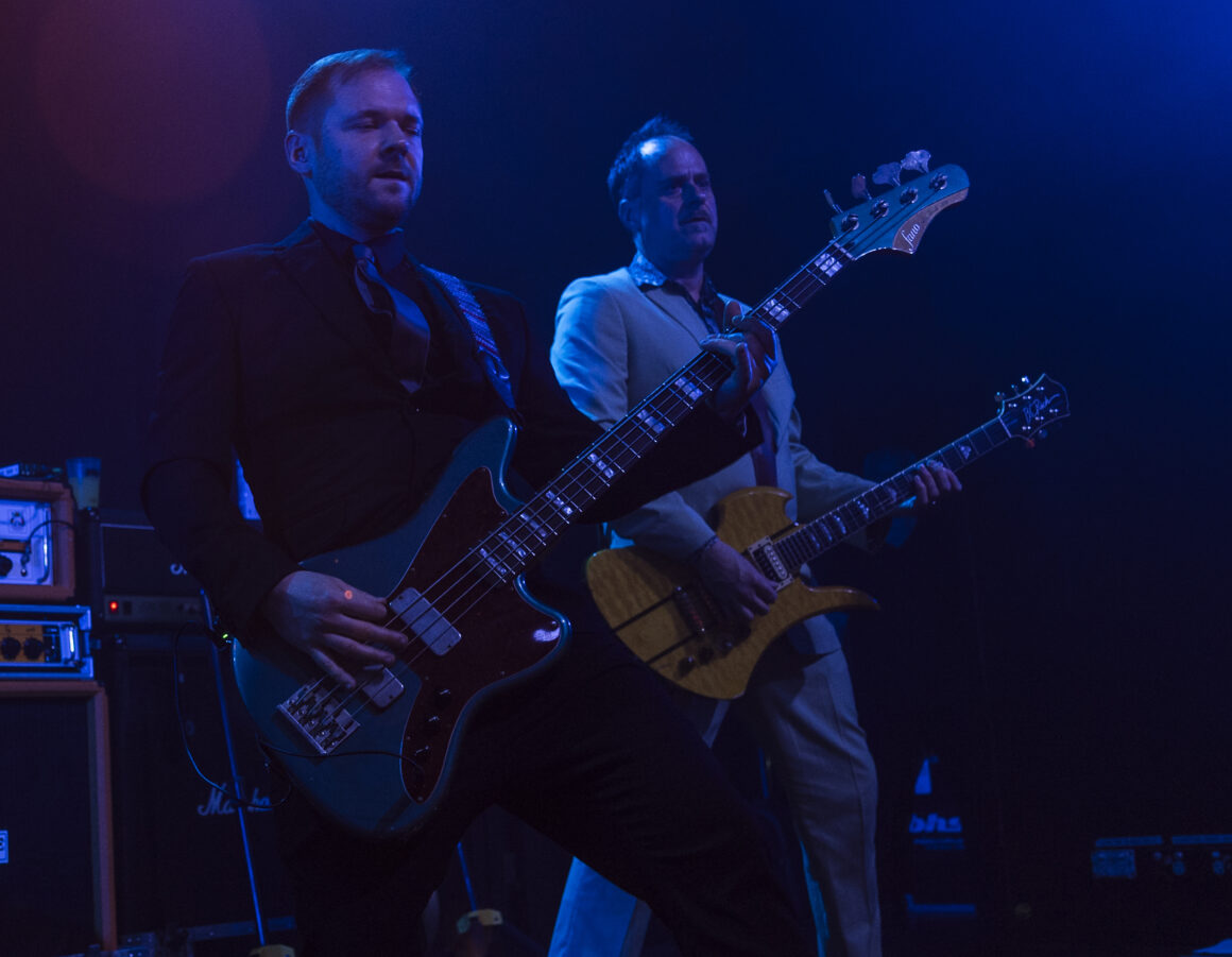 Puis Electric Six est entré en scène et a immédiatement fait basculer le tout sur le côté. Dick Valentine s'avance et laisse tomber avec désinvolture que le synthétiseur est atteint de la maladie de Lyme, nous nous en occuperons donc ce soir. Cinq électriques. La situation est déjà hors de contrôle avant même de réellement commencer.