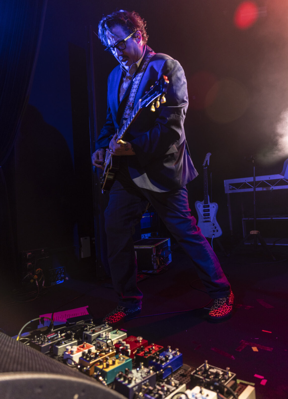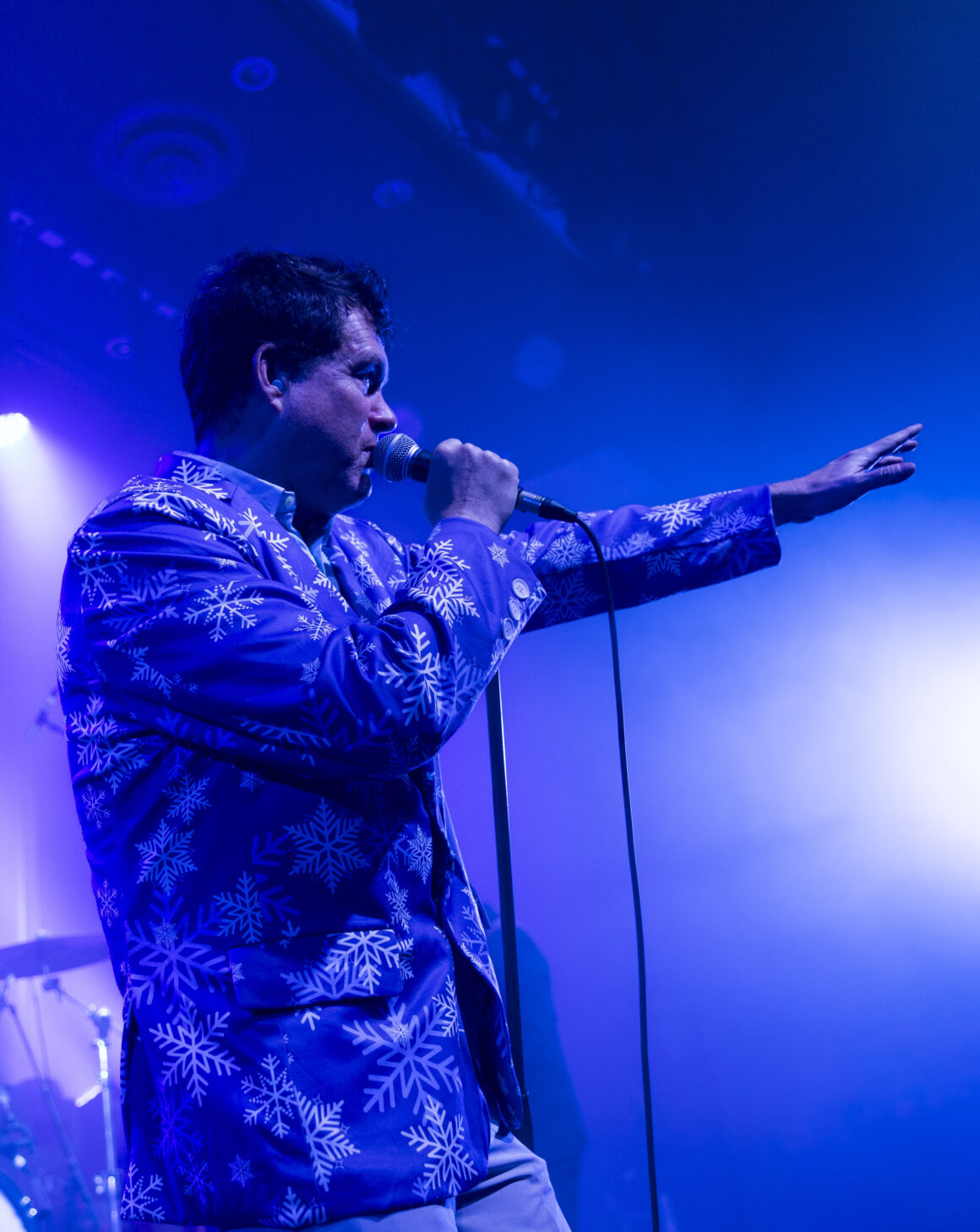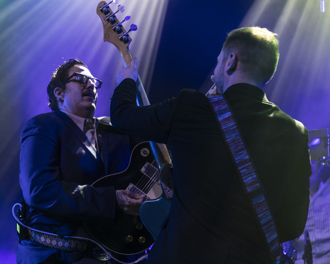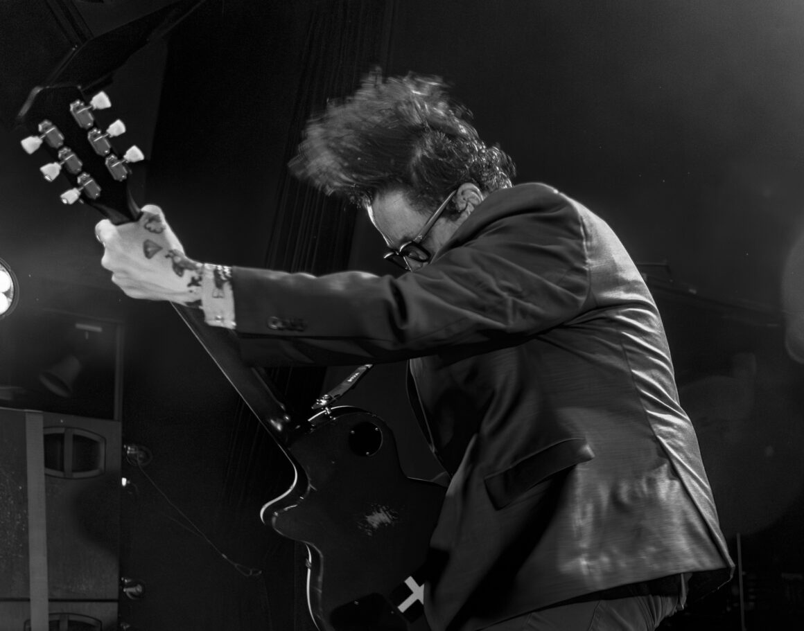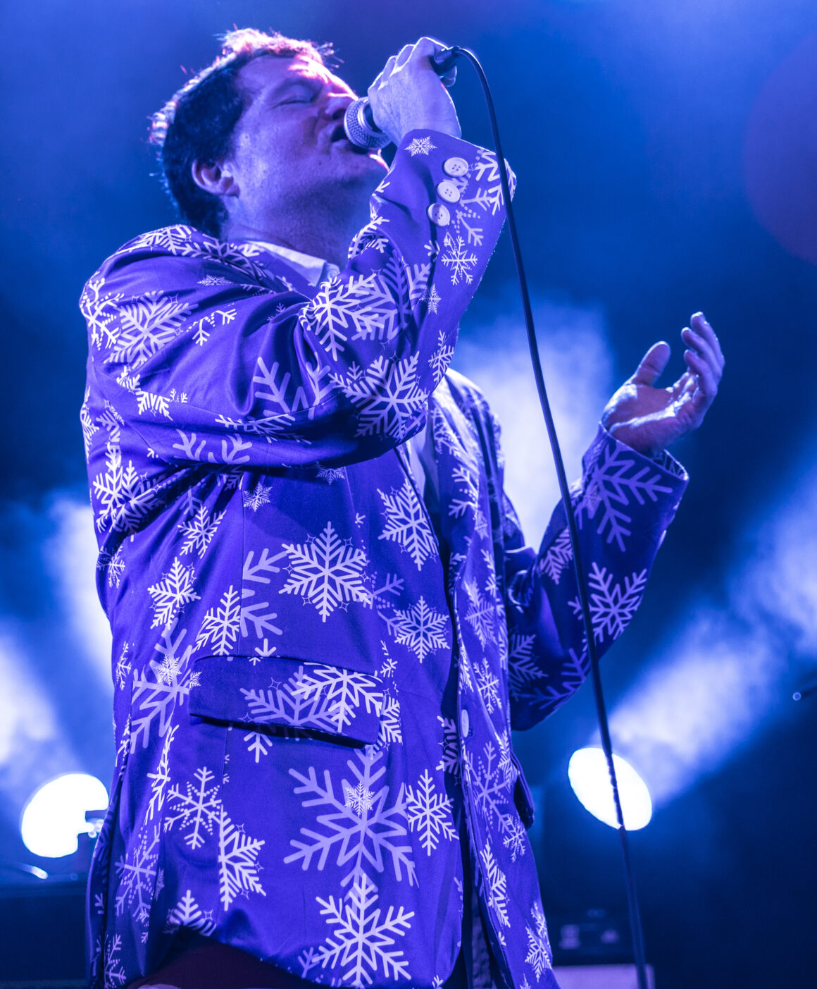 Puis Electric Six est entré en scène et a immédiatement fait basculer le tout sur le côté. Dick Valentine s'avance et laisse tomber avec désinvolture que le synthétiseur est atteint de la maladie de Lyme, nous nous en occuperons donc ce soir. Cinq électriques. La situation est déjà hors de contrôle avant même de réellement commencer.