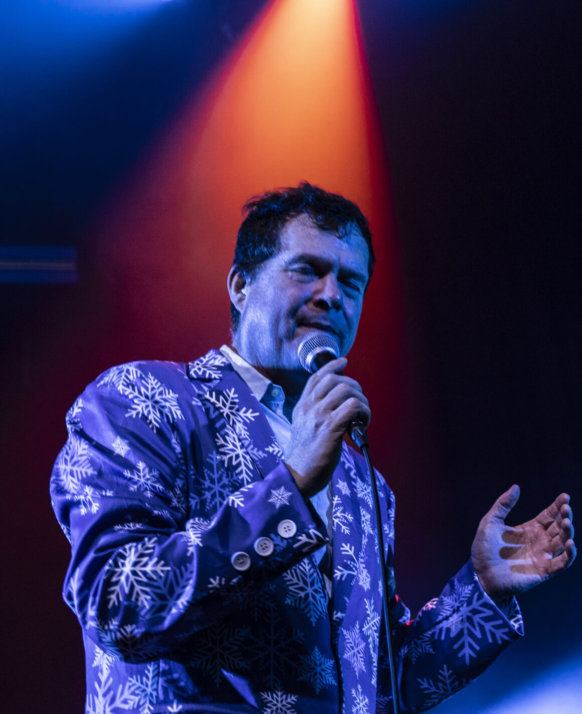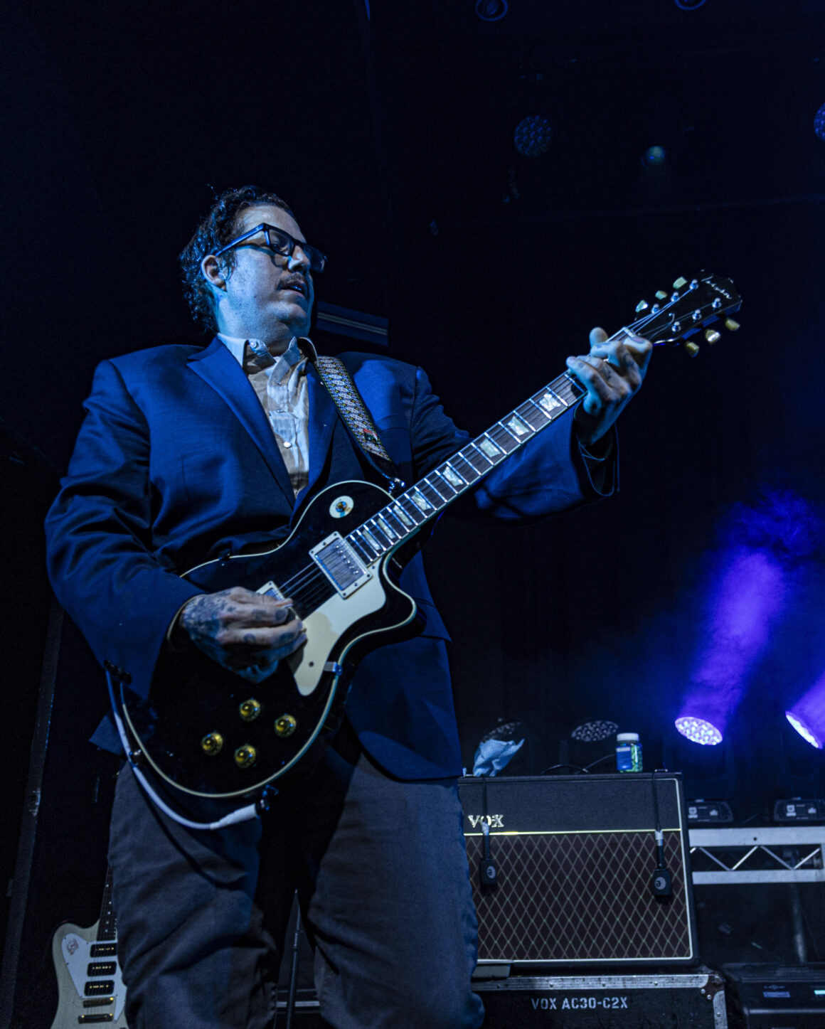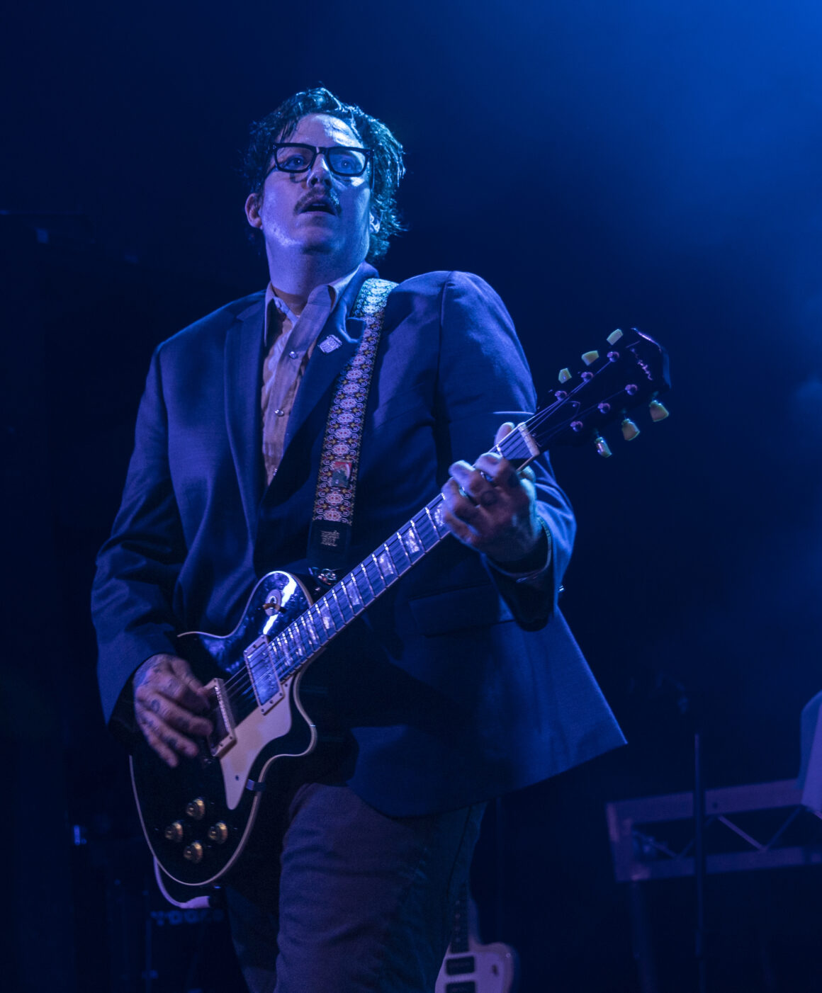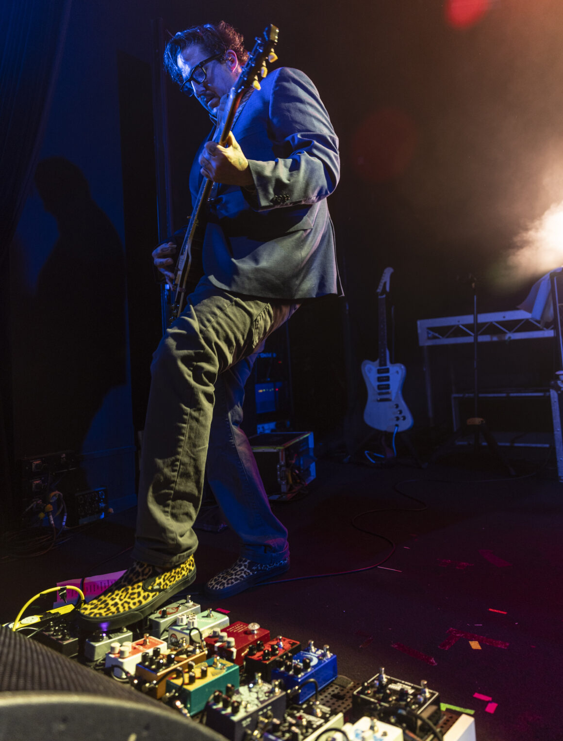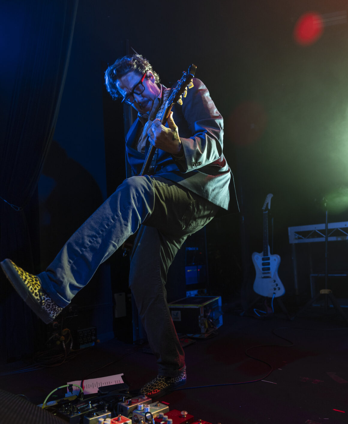 Puis Electric Six est entré en scène et a immédiatement fait basculer le tout sur le côté. Dick Valentine s'avance et laisse tomber avec désinvolture que le synthétiseur est atteint de la maladie de Lyme, nous nous en occuperons donc ce soir. Cinq électriques. La situation est déjà hors de contrôle avant même de réellement commencer.