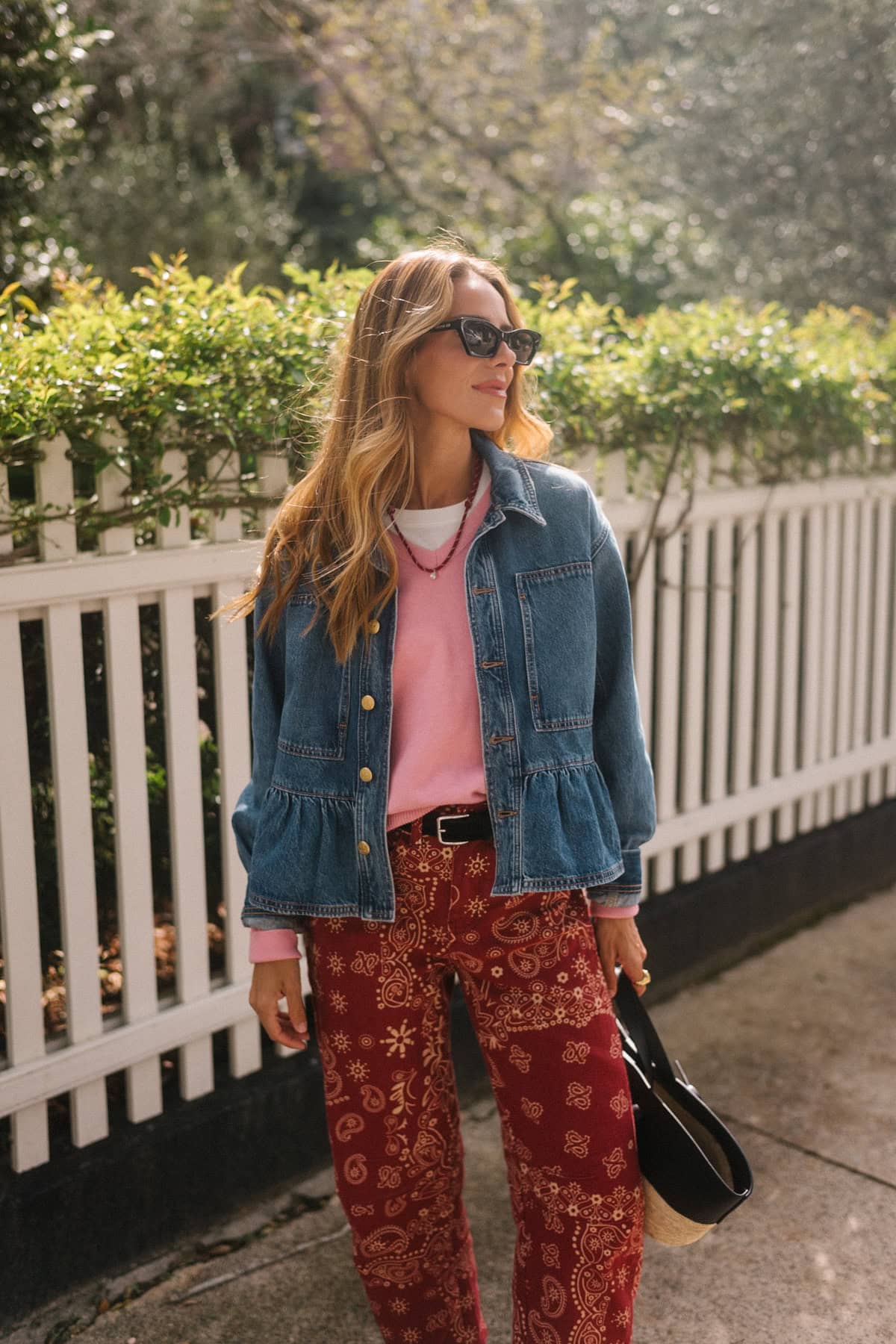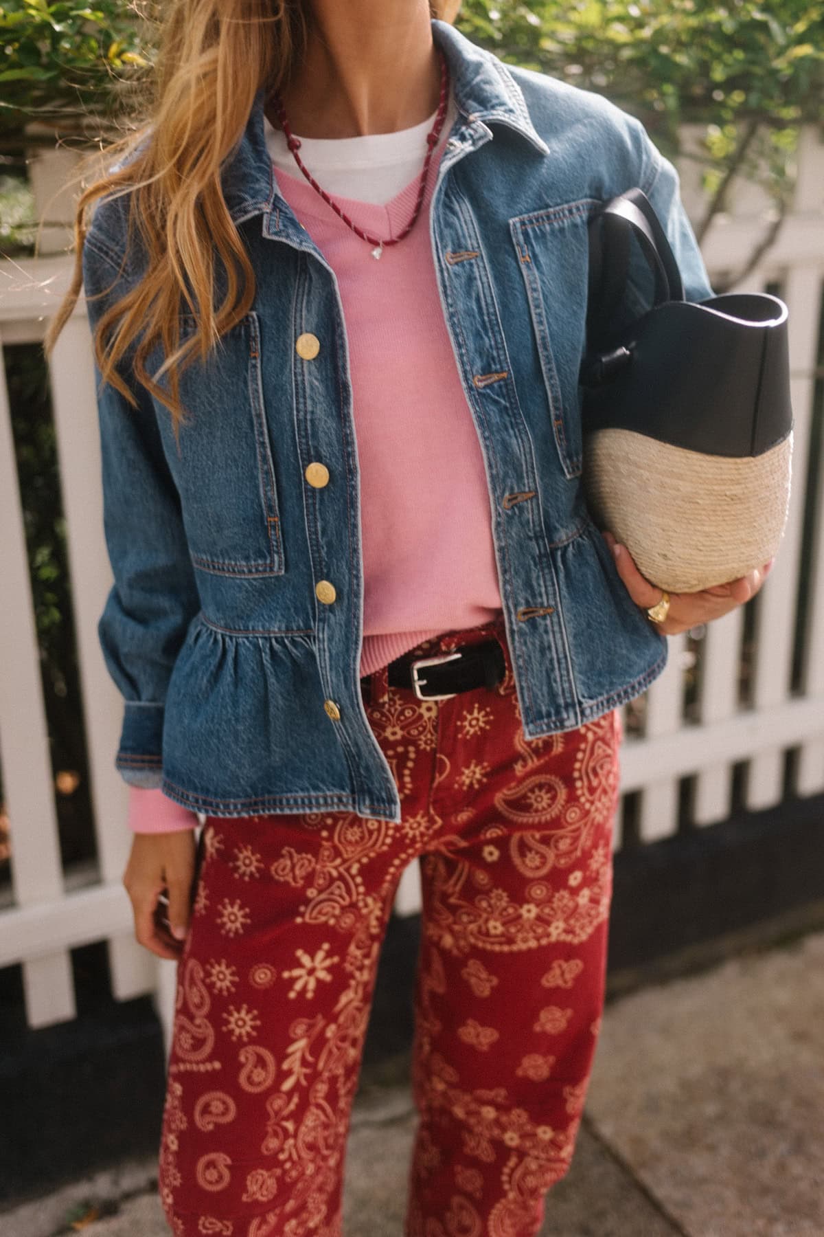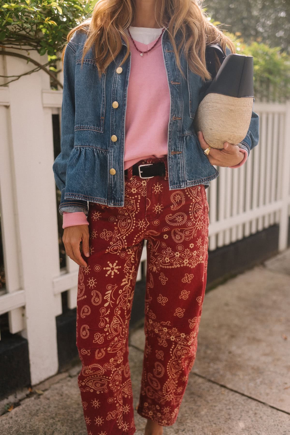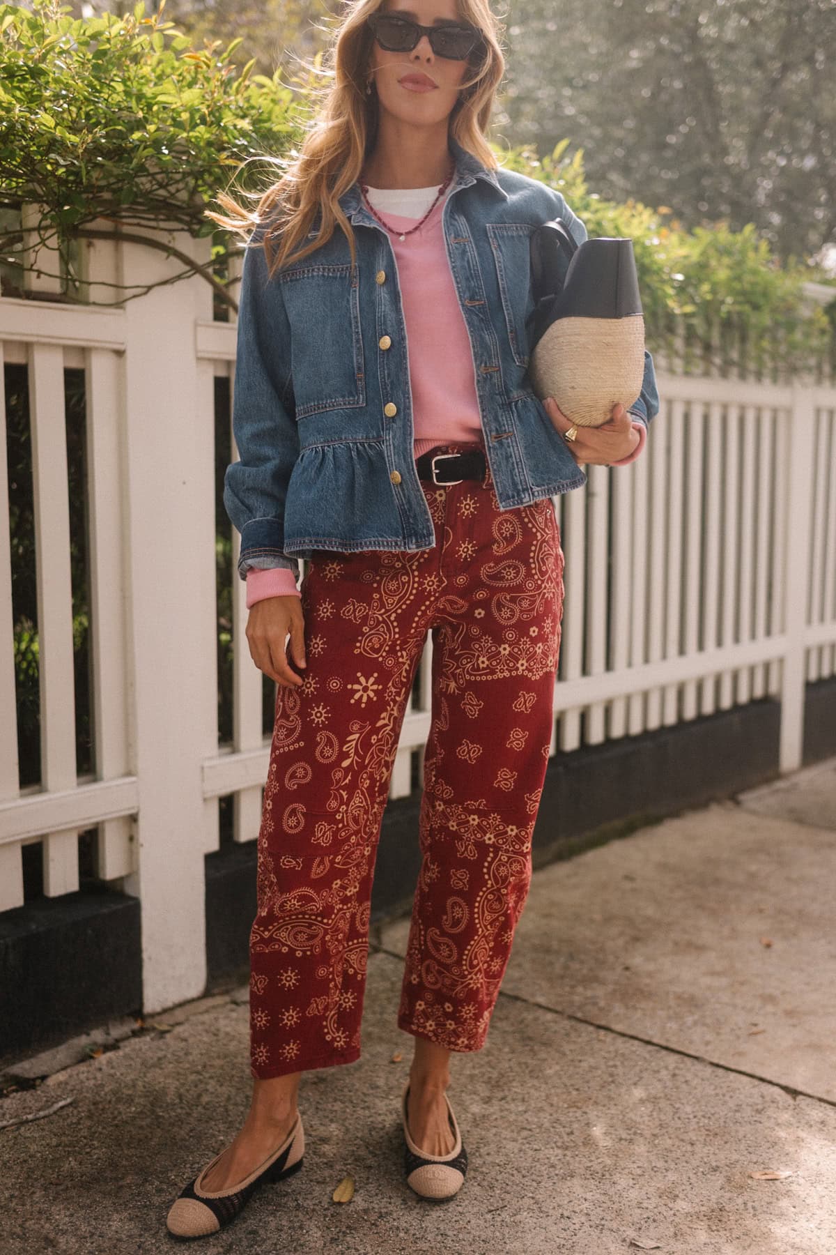 Ce jean à imprimé cachemire convient parfaitement comme pièce tendance associé à un haut blanc impeccable, des sandales simples ou un tricot doux pour les projets quotidiens, les escapades du week-end ou les tenues de vacances décontractées.