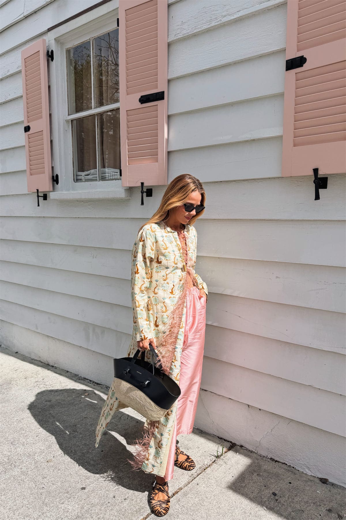 Pantalons en soie, hauts nuisette et caracos doux en blush, ivoire et jaune pâle créent une base douce, aérienne et sublime. Ces pièces transmettent une sensation de légèreté tout en semblant assemblées.