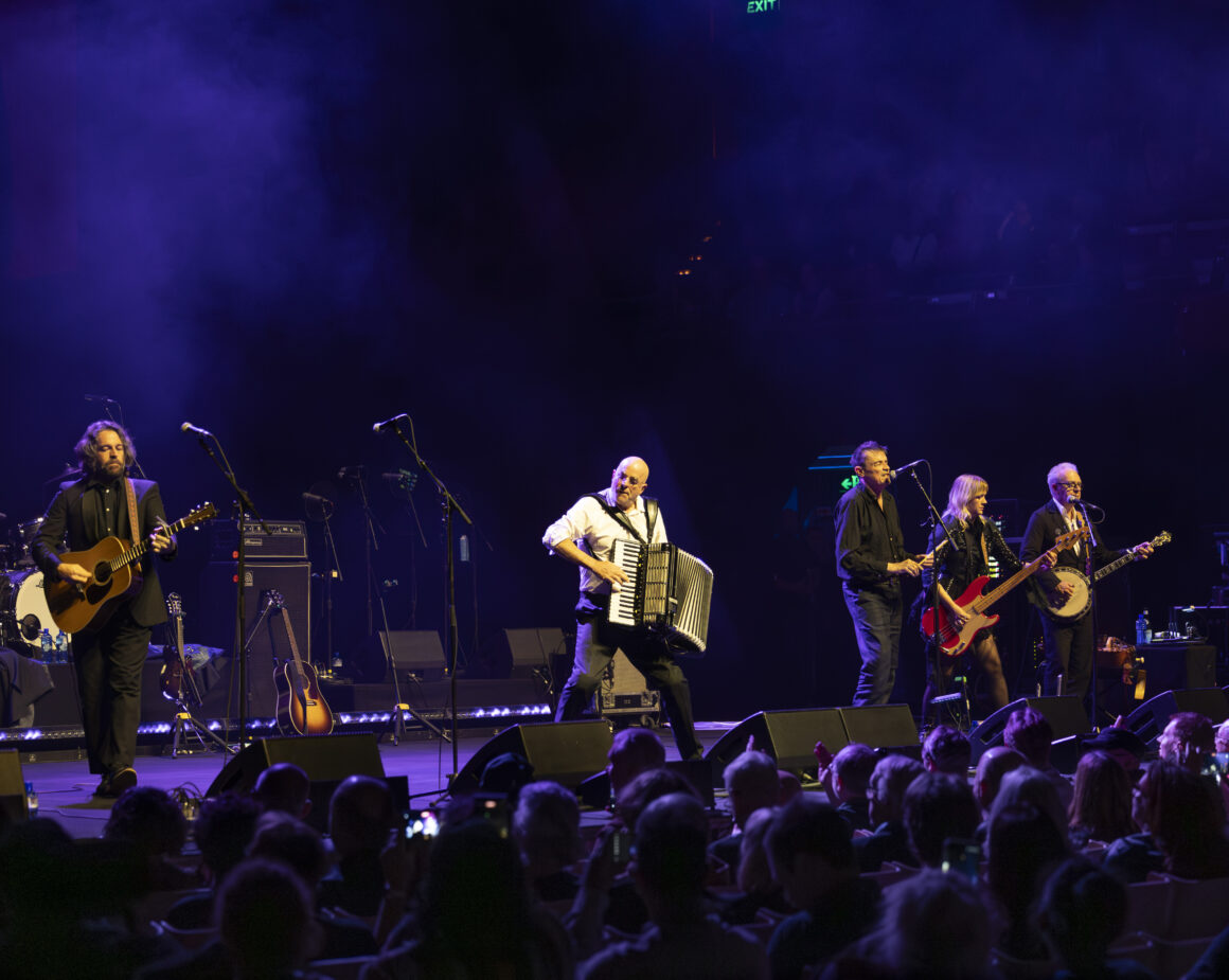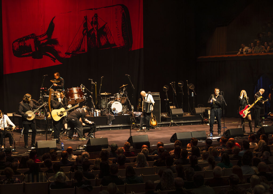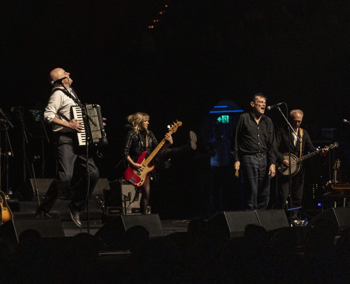 Le noyau du groupe – Jem Finer, Spider Stacy et James Fearnley – ancre la performance, mais c'est un ensemble élargi et intergénérationnel qui donne un nouveau poids au matériau. Autour d'eux, un impressionnant groupe de tournée remodèle les chansons en temps réel : Holly Mullineaux (basse), Darragh Lynch (guitare), Jordan O'Leary (banjo), Fiachra Meek (sifflets/sifflets) et Jim Sclavunos à la batterie, dont la présence apporte une dynamique plus sombre et percussive. L’absence de Shane MacGowan, décédé en 2023, résonne doucement tout au long de la représentation, ressentie davantage dans les espaces intermédiaires que dans n’importe quel moment individuel.