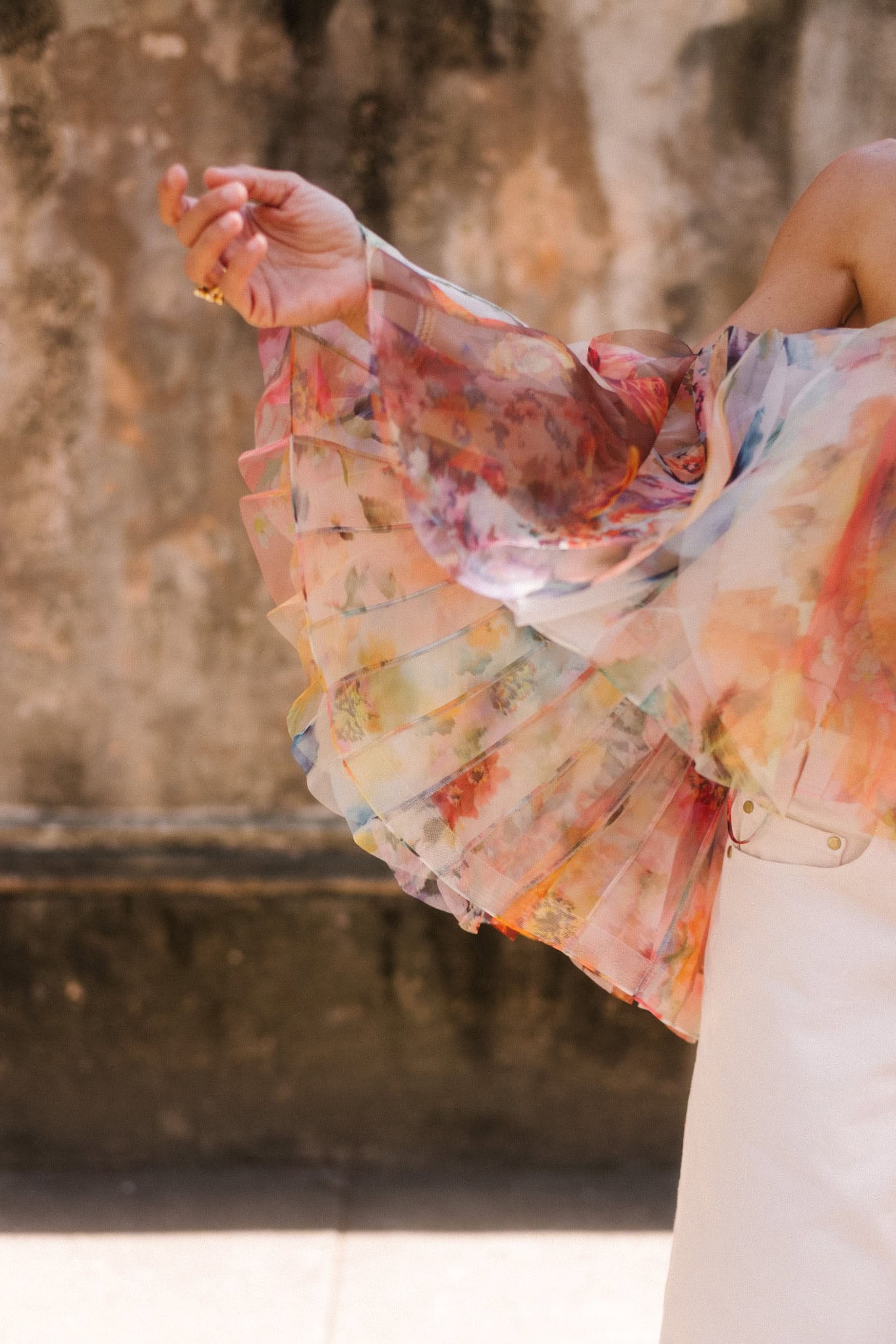 Il y a encore des volants placés le long de l'encolure, des manches ou de l'ourlet pour ajouter des détails ciblés. Le volume est mis en valeur par des manches plus amples, équilibrées par des lignes épurées sur le corps.