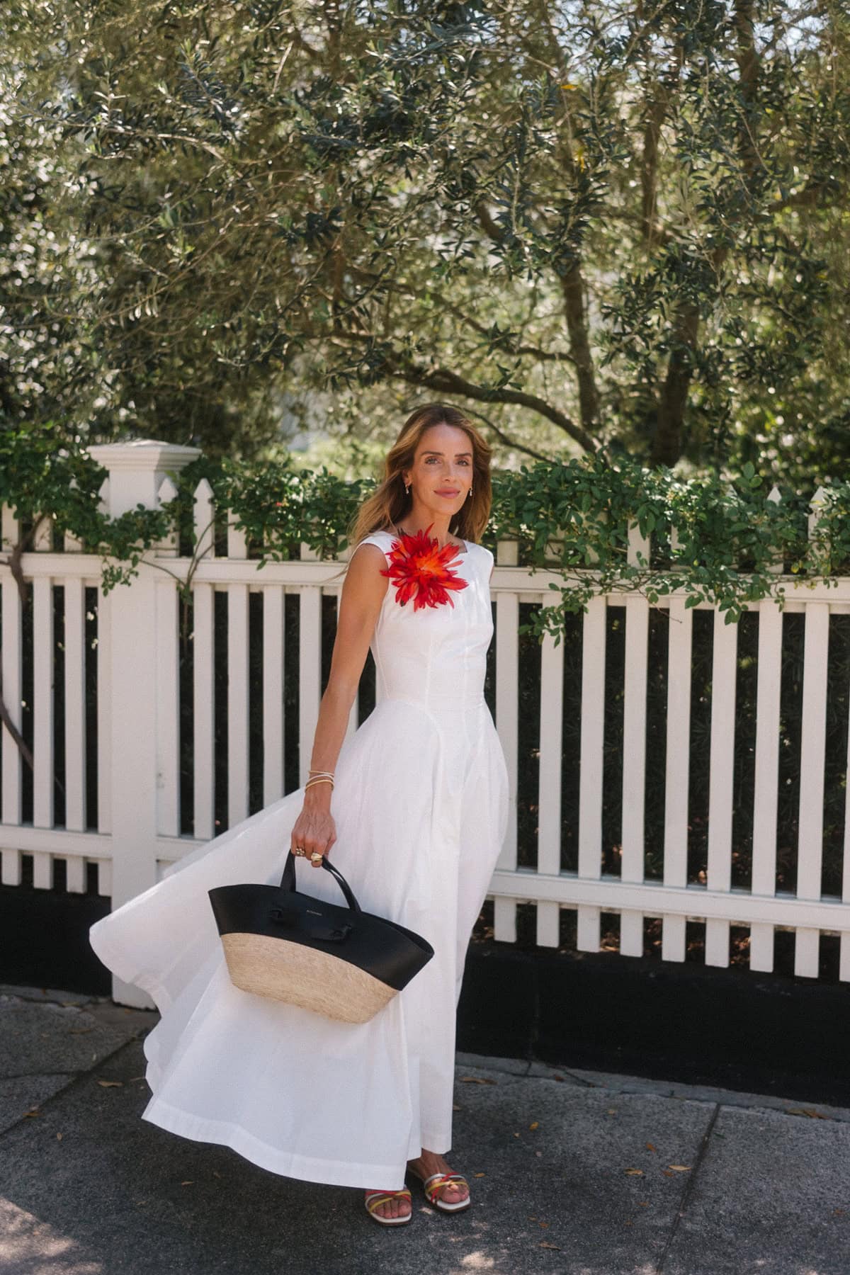 Robe Doen, broche Chanel (similaire ici et ici), sandales JB x Margaux, cabas Altuzarra