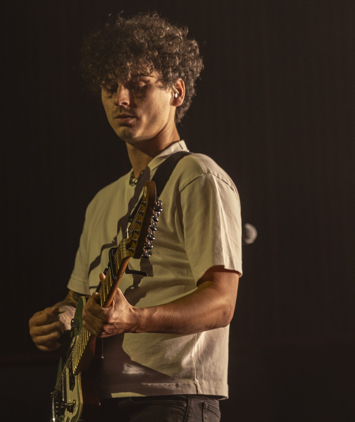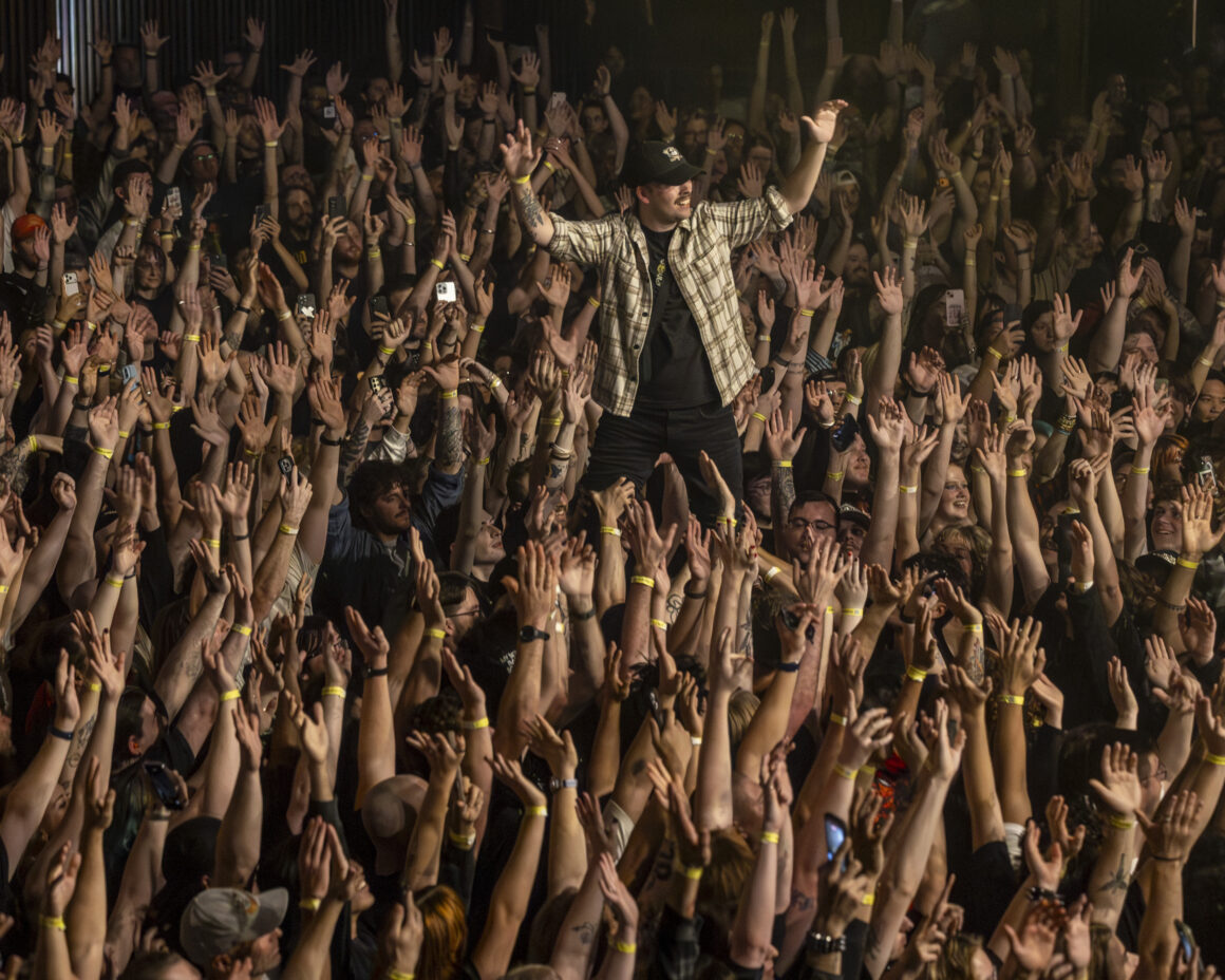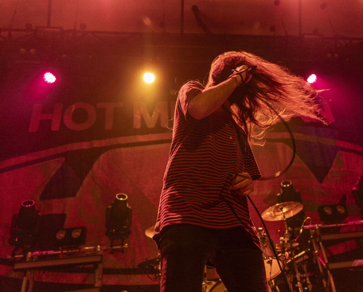 Puis Hot Mulligan monte sur scène et Roundhouse explose. Fraîchement sorti de leur nouvel album Le son que fait un corps quand il est immobileLe groupe de cinq musiciens du Michigan ressemble à tous égards à un groupe en plein essor. Leurs chansons équilibrent toujours les dépressions émotionnelles avec des accroches sucrées, mais en live, elles gagnent en puissance supplémentaire. Chaque break frappe plus fort, chaque mélodie monte plus haut, chaque parole sonne comme si elle avait été portée ici par des centaines de gorges.