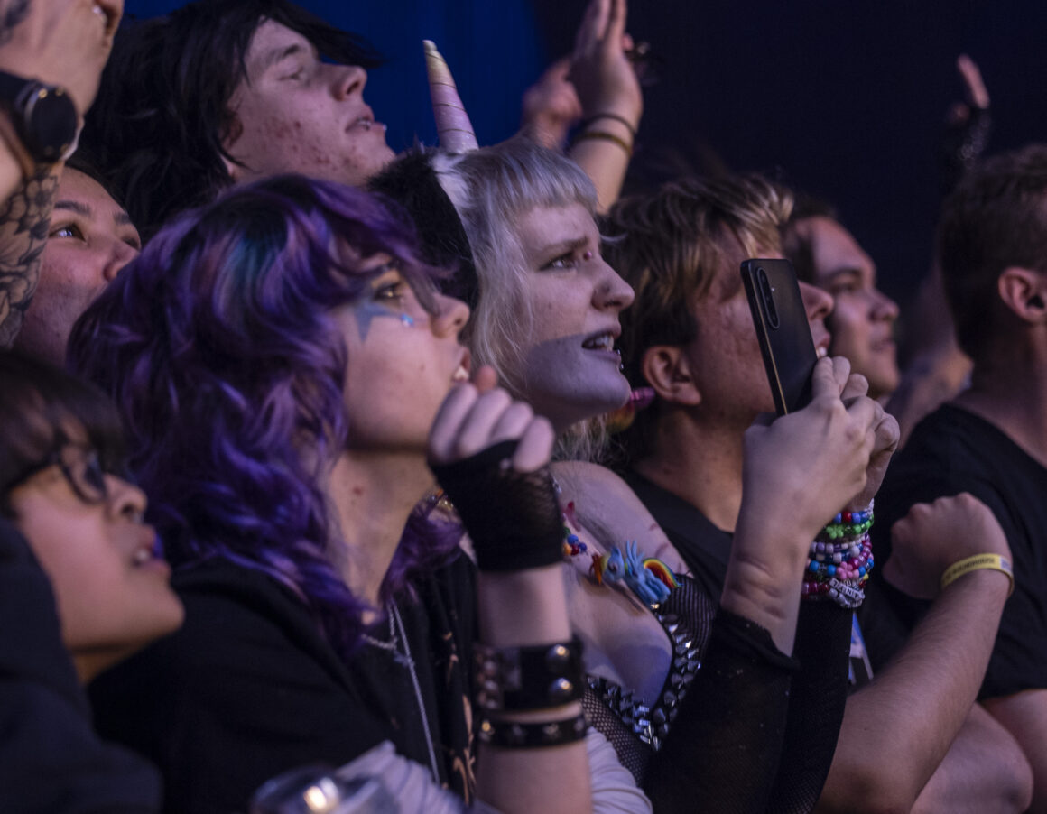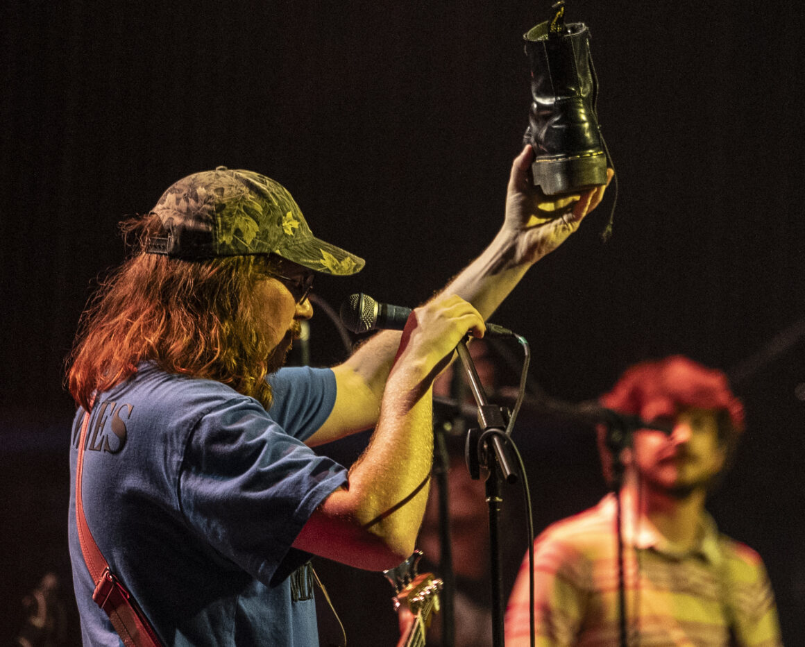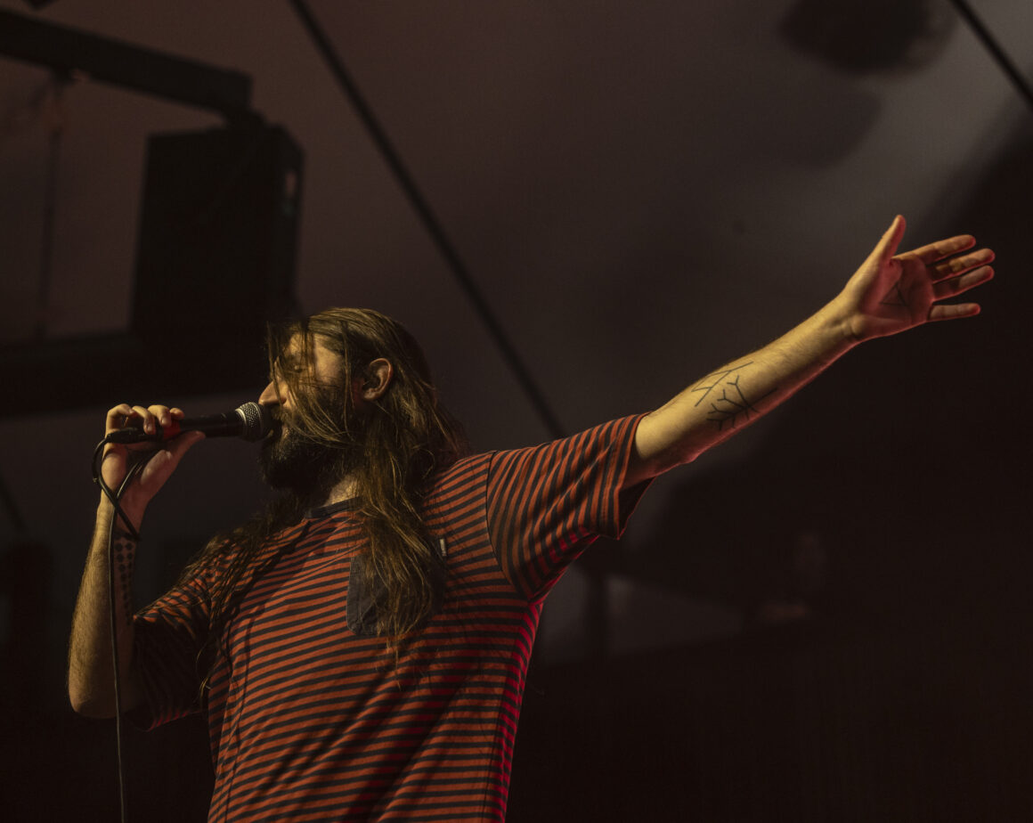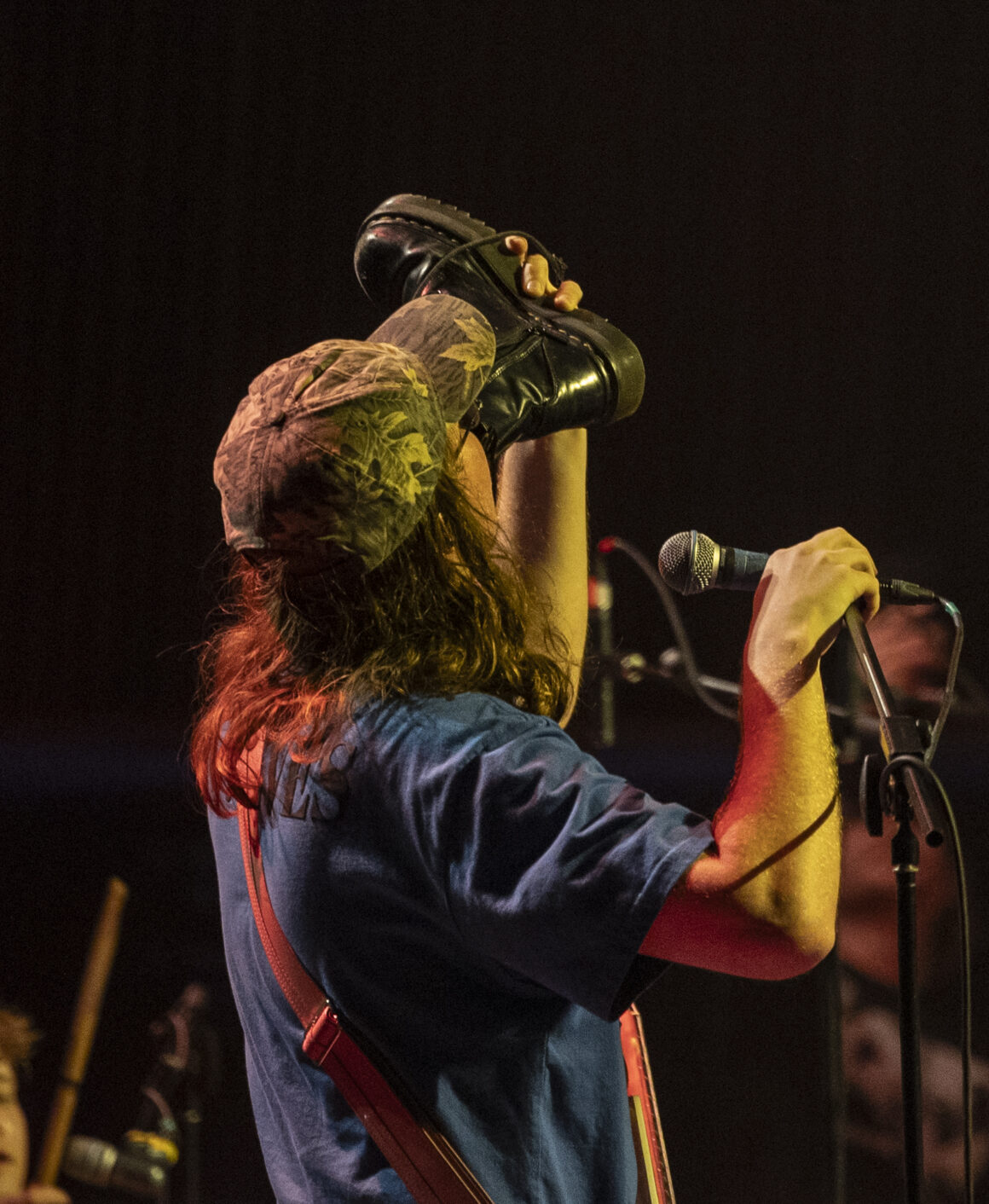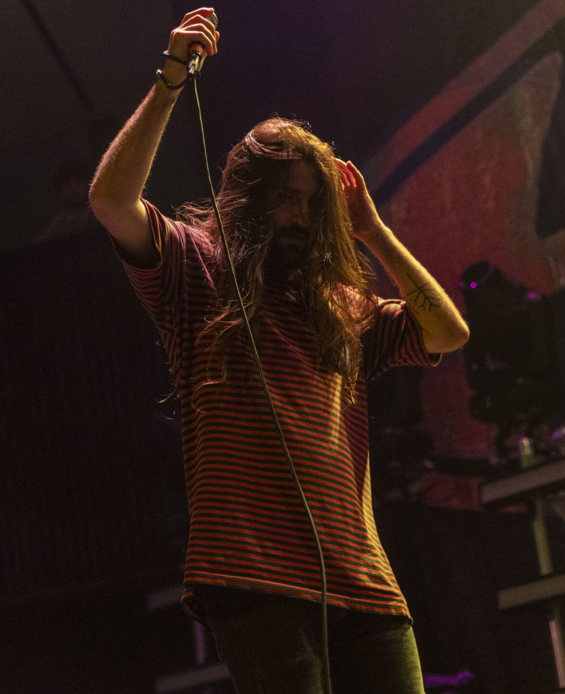 Au fur et à mesure que le décor prend de la vitesse, la foule devient un acte à part entière. Les crowdsurfers roulent sans fin vers la barrière, vague après vague, tandis que des fosses circulaires éclatent sur le sol, s'effondrent et se reforment ailleurs quelques instants plus tard. La salle bouge avec le groupe plutôt que de simplement les regarder. Set d'ouverture Comment tu ne sais pas ? Coquilles de tatou Dès le début, les premiers corps s'élèvent dans le ciel. Boire du lait et courir Et Pssst ! Le golf est populaire Gardez la pièce en mouvement constant Mouvement de mouche (tout le temps) transformant le sol en un tas géant de membres et de joie.