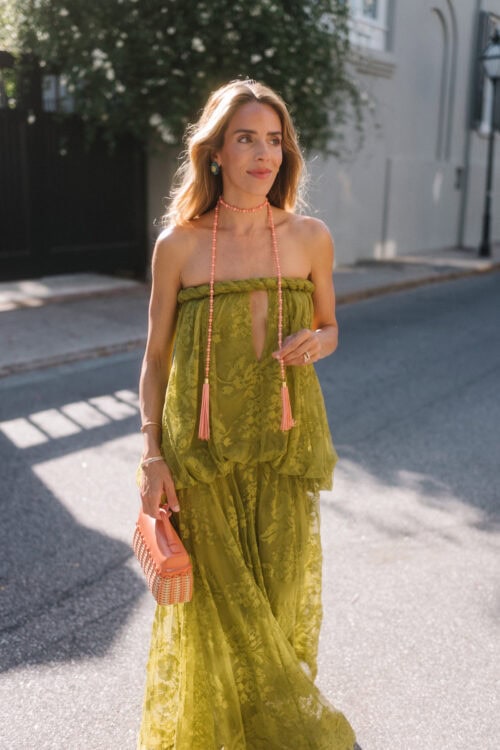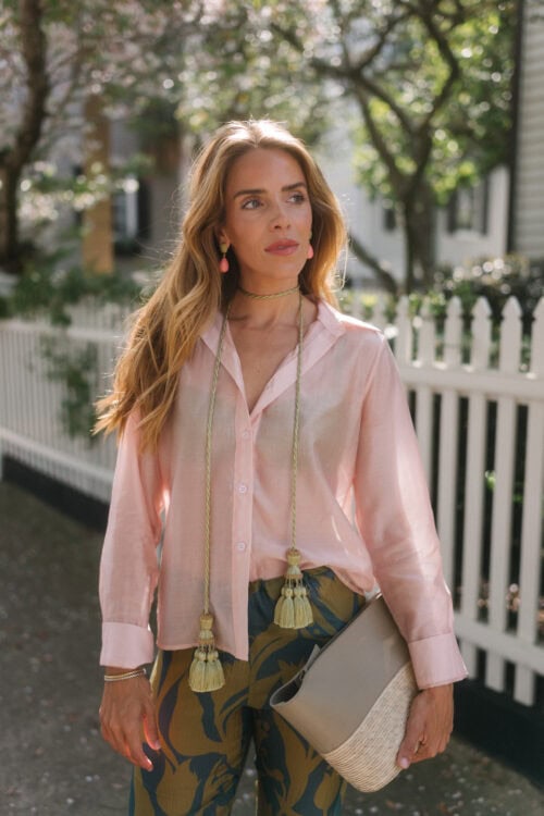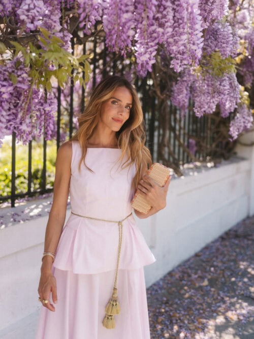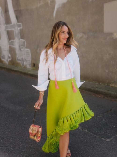Chemise Givenchy, jupe Alaia, collier JB x Jennifer Behr Charleston, sac Valentino, talons JB x Margaux | Haut et jupe Adam Lippe, collier Jennifer Behr Charlotte, chaussures JB X Margaux, sac Loro Piana (similaire ici) | Haut Lisa Says Gah, pantalon Dries Van Noten, boucles d'oreilles JB x Jennifer Behr Woolfe, collier JB x Jennifer Behr Charlotte, pochette Altuzarra, talons similaires