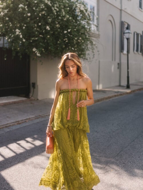 Robe Zimmermann, colliers JB x Jennifer Behr Charleston & Montagu, sac Loro Piana (similaire ici)