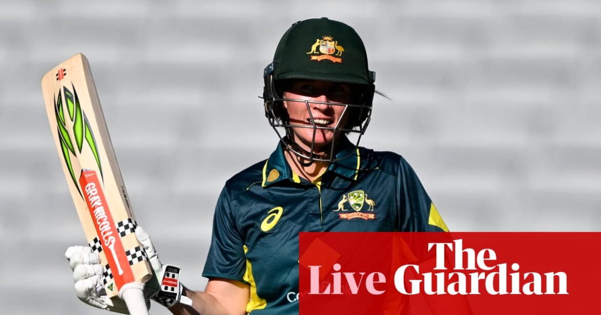 12th over: Australia 117-1 (Mooney 40, Litchfield 30) Another bowling switch as Rosemary Mair returns. Litchfield isn’t fazed. She skips down and belts it over mid on. Amelia Kerr gives chase but cannot get there. Another four – her fifth from 25 balls. Mair is mixing up her pace now and it’s working as Mooney hops down and misses a couple. Now she connects to a wide one but at full stretch it’s only enough for two runs. Mooney flicks fine on the last ball and a great lunge by Jess Kerr saves four.
