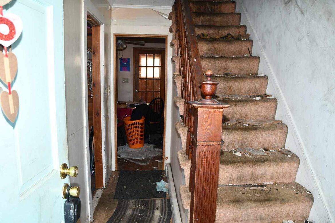 Plusieurs images partagées par le CBS WFSB Connecticut News local par le service de police de Waterbury cette semaine montrent un escalier sale, des pièces surpeuplées qui étaient apparemment absorbées avec des ordures et une salle de bain avec du contreplaqué dans la baignoire et le sol.