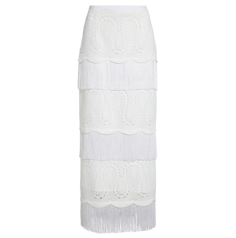Une pointe de crochet délicate et des détails marginaux ludiques font de cette jupe crayon une pièce exceptionnelle avec le bon haut pour un look Boho-Chic essentiel.