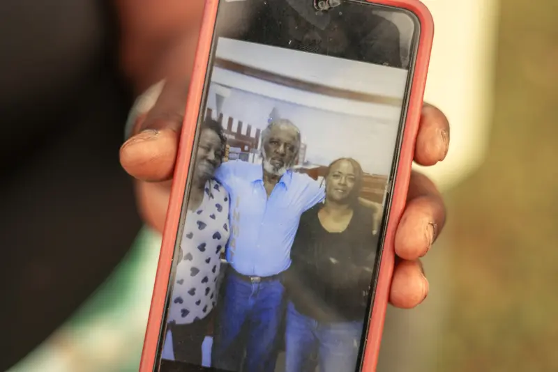 Brown, right, shows a photo on her phone taken when she visited Alexander, center, at Rayburn Correctional Center last year.