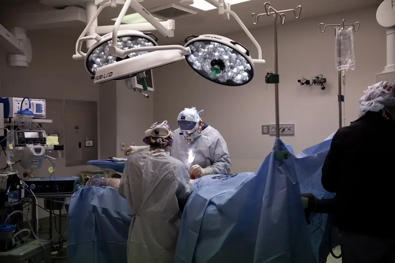 One afternoon last fall, DellaCroce strode into a cavernous operating room to check on a patient. On the table in front of him, a woman lay covered in curtains of blue surgical cloth, only her torso exposed. Earlier in the day, a surgical oncologist had removed her right breast as part of a mastectomy to treat her cancer. Later, another surgeon had taken flaps of fat from her stomach and interlaced them with blood vessels to create a new breast to replace the lost one. Now, in the fifth hour of surgery, a physician’s assistant leaned over her midsection, closing an incision along her side with some final stitches. Nurses hurried around the space, preparing to wrap up the operation. Paul Simon’s “You Can Call Me Al” played in the background. The smell of burnt flesh hung in the air. A blue light signaled that the new arteries were successfully pumping blood. “Wow, that woman looks really good,” DellaCroce told the physician’s assistant. “Nice job.”
