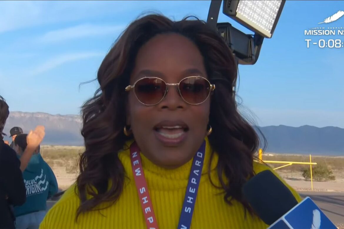 Winfrey, âgé de 71 ans, faisait partie des participants du point de départ de l'ouest du Texas, à l'extérieur d'El Paso, lorsqu'une équipe de vol purement féminine s'est effondrée sur une fusée bleue pour un court espace jusqu'au bord de l'espace.
