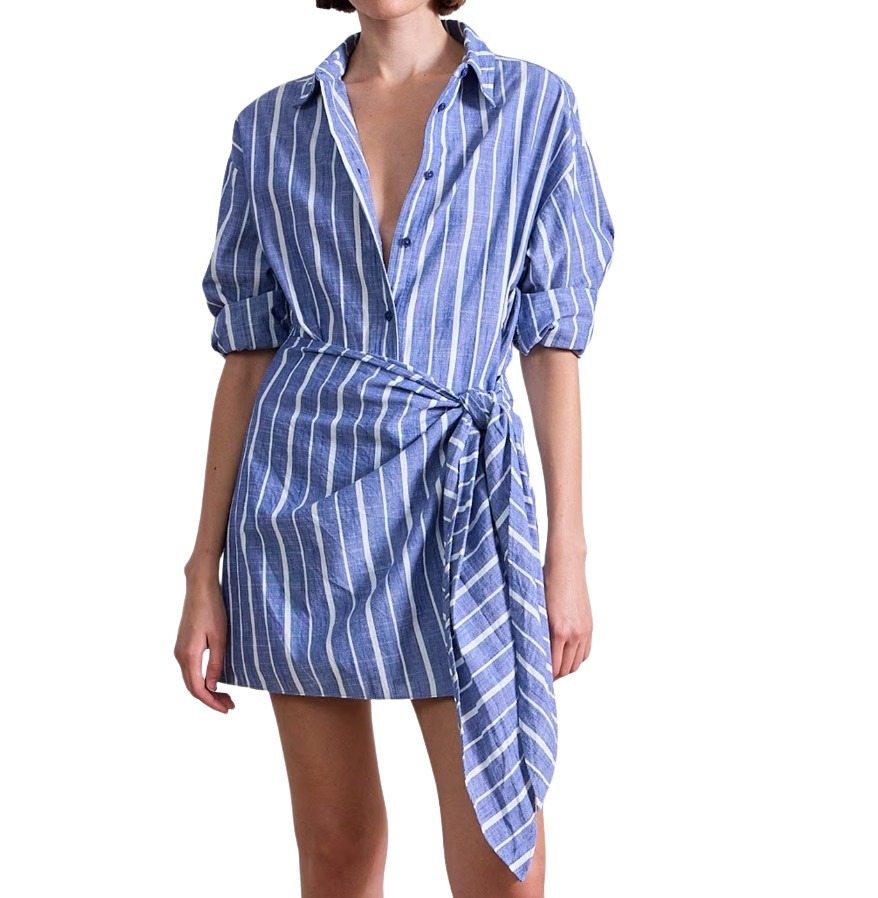 Avec des rayures verticales courageuses et une silhouette aérée, cette mini robe enveloppante donne à votre garde-robe de printemps une note ludique mais sophistiquée – idéal pour les sorties de week-end ou le brunch ensoleillé.