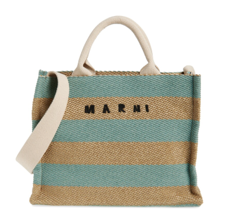 Cette mini poche tissée avec des rayures classiques et des détails de logo subtils est le carrryall parfait pour le printemps et donne des courses quotidiennes ou les jours de plage un motif.