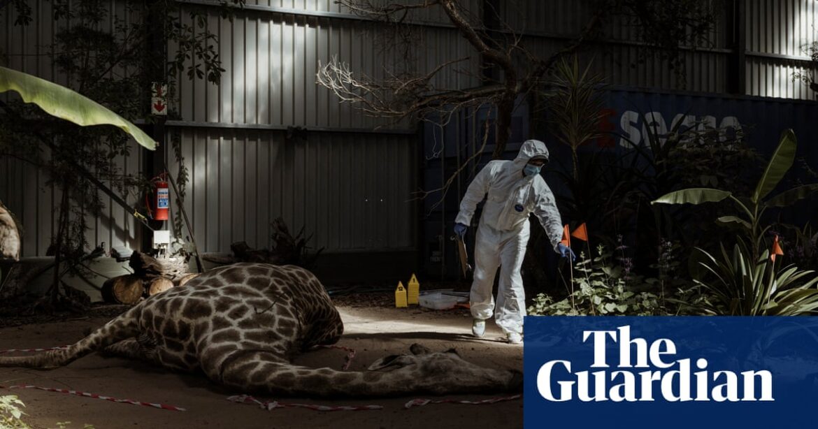 Un étudiant de la poursuite Hazmat va dans une “scène de crime” dans l'entrepôt de la Filan Forensic Academy dans une réserve de jeu et de nature pour une girafe taxididée. La scène du crime a été soigneusement créée par l'Académie, un centre de formation qui est censé lutter contre le braconnage en fournissant aux Rangers, aux agents de la conservation de la nature, aux autorités d'application de la loi et aux étudiants. En enseignant à la protection d'une scène de crime, à trouver et à recueillir des preuves et à présenter plus tard un témoignage devant un tribunal, ils espèrent renforcer la persécution de la criminalité faunique dans toute l'Afrique
