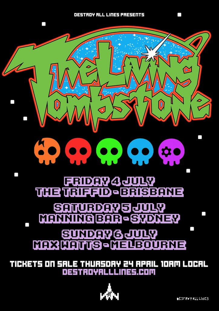 Le duo de cyber-rock le plus populaire d'Internet, la pierre tombale vivante, se trouve dans une tournée australienne en juillet et apporte son mélange turbocompressé de rock électrique, de culture de jeu et d'hymnes sur la côte est après le mème.