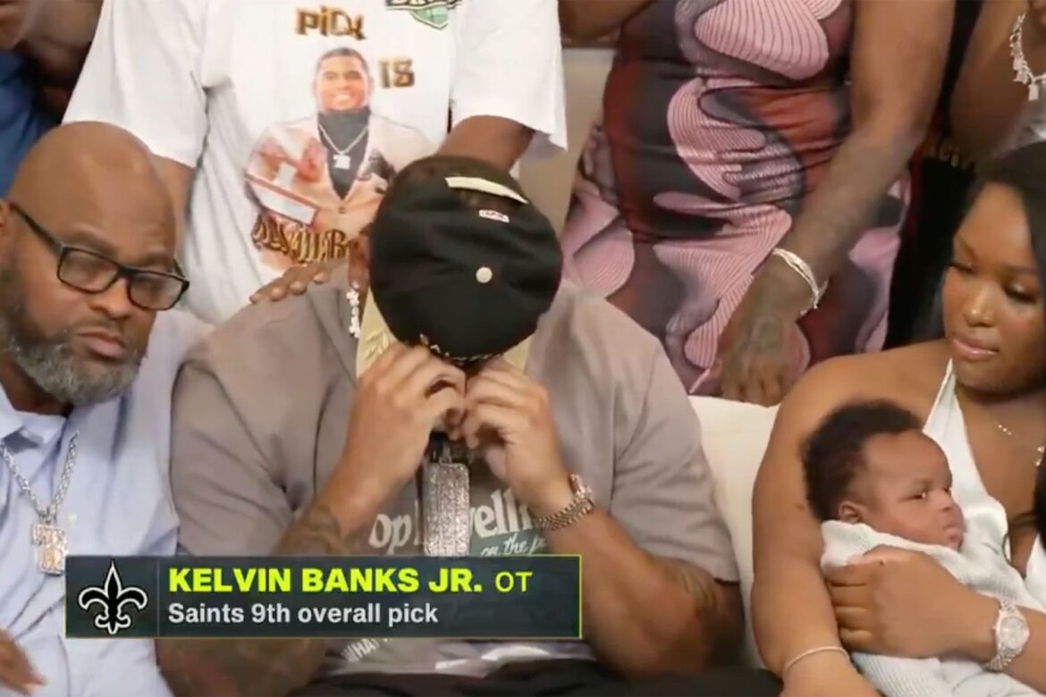 Le tacle offensif du Texas (21 ans) a été le numéro 9 le jeudi 24 avril au Draft de la NFL 2025 lorsqu'il a été repêché par les New Orleans Saints. À un moment émotionnel, sa famille a célébré l'occasion joyeuse et s'est vu sauter et s'est étreint.