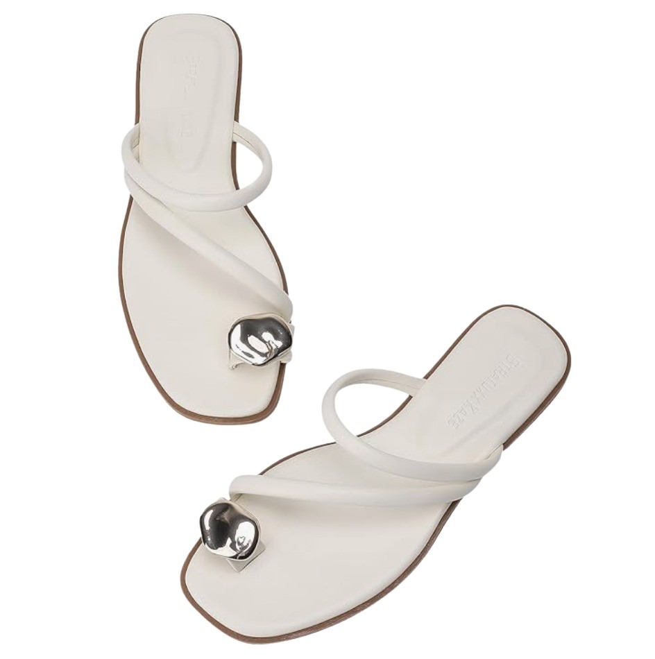 Ces sandales plates avec des orteils ouverts ont une conception de tanga minimaliste avec un anneau d'orteil et une sangle de cheville réglable. Votre construction légère et votre style à enfiler font de vous un choix confortable pour les excursions d'été informelles.