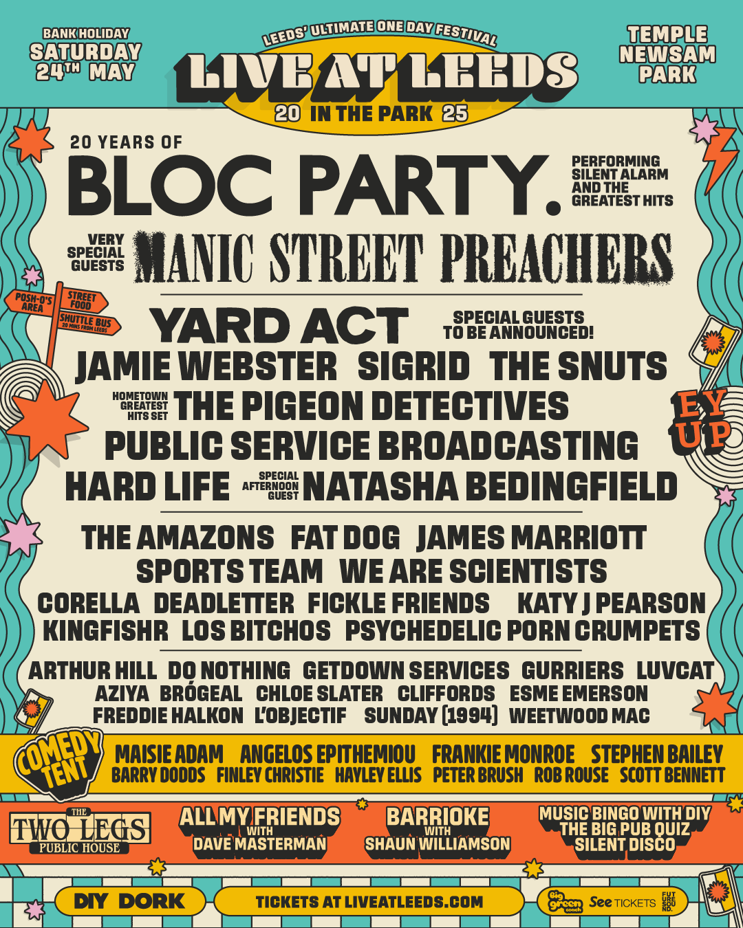 La tête d'affiche du site pittoresque du Temple Newsam Park sera FêteCélébrez le 20e anniversaire de votre premier album Alarme silencieuseJouez l'album dans son intégralité. Les choses seront les légendes du rock indépendant gallois Prédicateur de la route maniaque Actuellement en tournée à travers le Royaume-Uni, mais s'arrêtera à Leeds fin mai pour nous donner une marque.