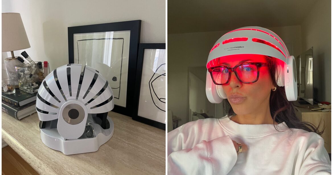 About once a month, I look in the mirror and have a meltdown about my hair. Whether it’s because of the grays that seem to pop up overnight, the damage that happens from using too many hot tools, or the fact that it seems thinner than ever, I’m usually pretty stressed about my hair. I’ve been trying to take better care of it, but as I’ve gotten older, I’ve definitely noticed some changes. I’ve tried supplements but I haven’t found one that works yet, and I’m still in the process of testing hair oiling routines and other topical solutions. I’ve always been a fan of LED therapy, especially in the form of LED face masks, so when I learned that you can use similar tech for hair growth, I immediately wanted to try it. The one I kept seeing all over my social media? The CurrentBody LED Hair Growth Helmet ($859).