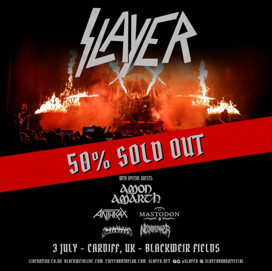 Thrash Giants, Slayer, monte sur nos banques avec une énorme facture de soutien d'Amon Amarth, d'anthrax, de mastodon, de hainebreed et de coucheur de cou. Ils vont d'abord parcourir Cardiff avant de viser à Londres et dans le parc Finsbury