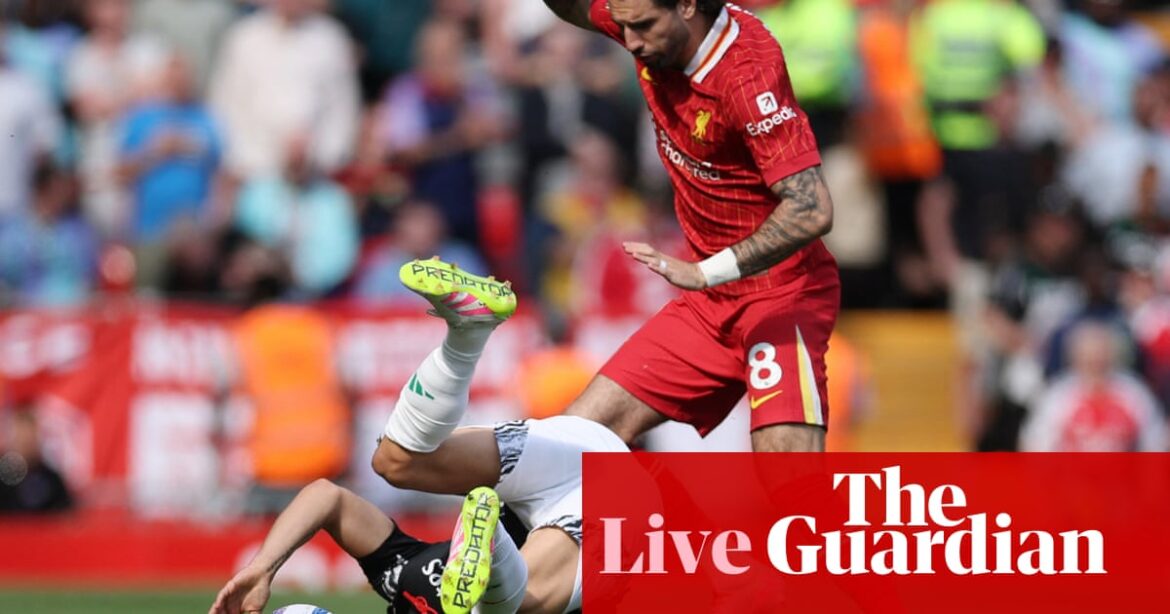 56 minutes: Le blanc hoche la tête des orteils GAKPOS pour arrêter les progrès des hôtes, mais Liverpool commence à collecter quelques attaques ensemble – enfin. Szoboszlai cherche un tir sur les paumes de Raya de 30 mètres ou quelque chose.