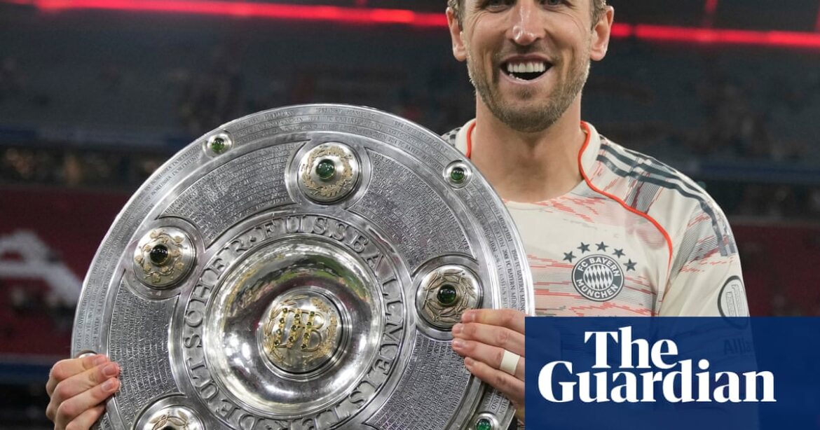 jeT est en retard à Munich et s'approche de minuit lorsque Harry Kane apparaît. La zone d'interview télévisée peu visible et sans fenêtre sous l'Arena Allianz n'a pas pu contraster avec les feux d'artifice étourdis et imbibés de bière, qui s'allume à l'extérieur lorsque le Bayern Munich profite d'un titre de 34e ligue. Kane a également quelque chose de différent et ce n'est pas seulement la médaille d'or.
