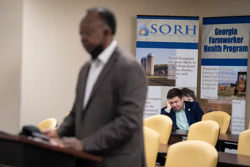 Die staatlichen Gesundheitsbeamten reagierten während des Treffens auf keinen der Redner. Grant Thomas, Kemps ehemaliger Gesundheitspolitikberater und stellvertretender Direktor der staatlichen Medicaid -Agentur, saß im hinteren Teil des Raumes und interagierte nicht mit den Teilnehmern. Thomas lehnte es ab, in der Aufzeichnung zu sprechen.