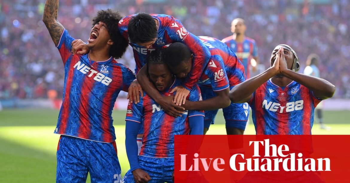 38 min “It’s amazing the aura City have built over the last decade or so, and how it colours our vision,” says Matt Dony. “Stepping back, there’s only six league places and 16 points between these two teams. City are closer points-wise to Palace than they are to Liverpool. There isn’t actually that much between them, really. And yet, we naturally fall back into seeing it in terms of ‘massive underdog’ and ‘almost-certain-winners’. That Palace goal feels like a shock, but it shouldn’t be. Maybe their likability plays into it; we’re not always used to ‘likable’ teams being good. But they are, indeed, good. If they win, they may well get patronised to within an inch of their lives, which will be a real shame. They’re here on merit, and they could win on merit.”