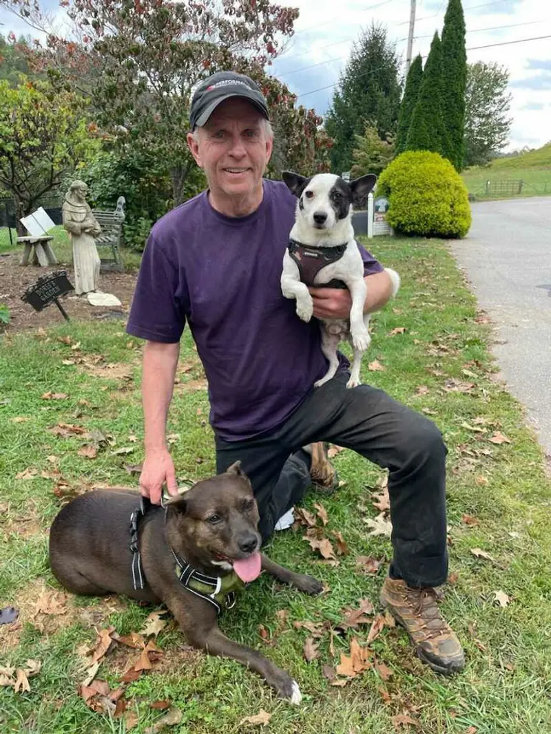 When the power goes out, Janicke lights candles and opens a door. She loves to hear the creek just beyond, a normally burbling carrier of rainfall down the mountain. But after two days of rain, it is starting to roar even before Helene’s arrival. She settles onto a living room couch with a little rat terrier, Troopie, one of their two rescue dogs.