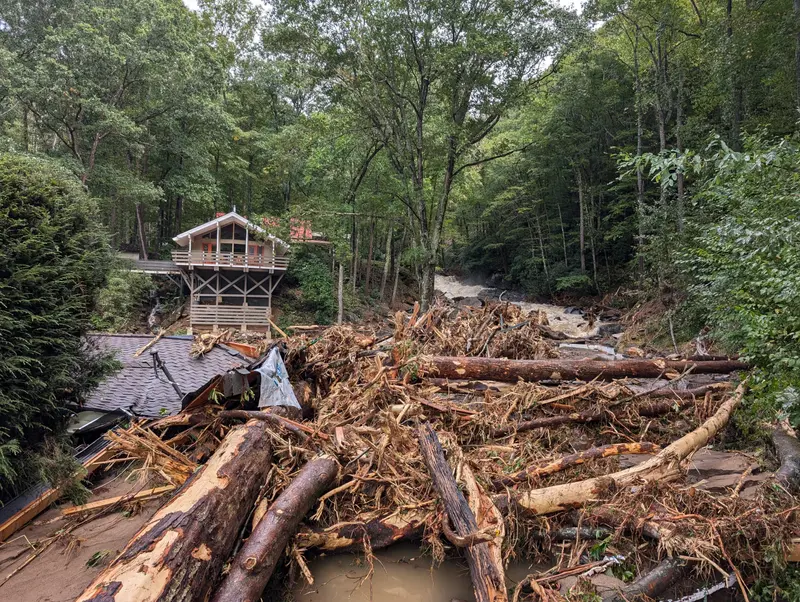 After John falls asleep in his hotel, Helene makes landfall on the Florida panhandle about 500 miles south of the Black Mountains. As its massive bands close in, Janicke stays up listening to the storm and texting a tenant who rents one of their cottages, about 40 yards away right on the creek.