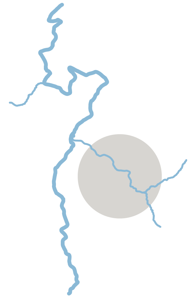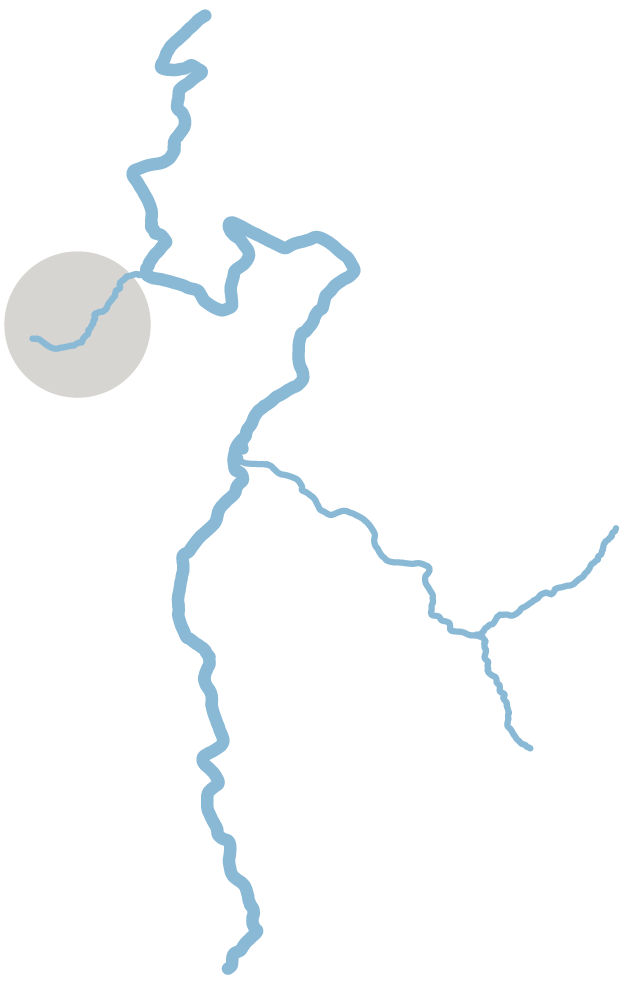 Several peaks wrap around Tudy Creek. High atop a particularly craggy one, the rainfall gets a toehold beneath soil clinging to a very steep and slightly concave slope of rock. Soil and rock will begin to slide with the water. Following the creekbed, the flow will gain velocity and weight and hurtle downhill with enough power to uproot trees and dislodge boulders.