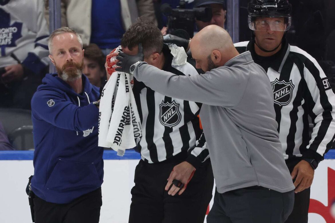 L'arbitre de la LNH à long terme Chris Rooney est “bon” après avoir été frappé par un bâton défectueux lors du match éliminatoire dimanche soir entre les Florida Panthers et Toronto Maple Leafs.