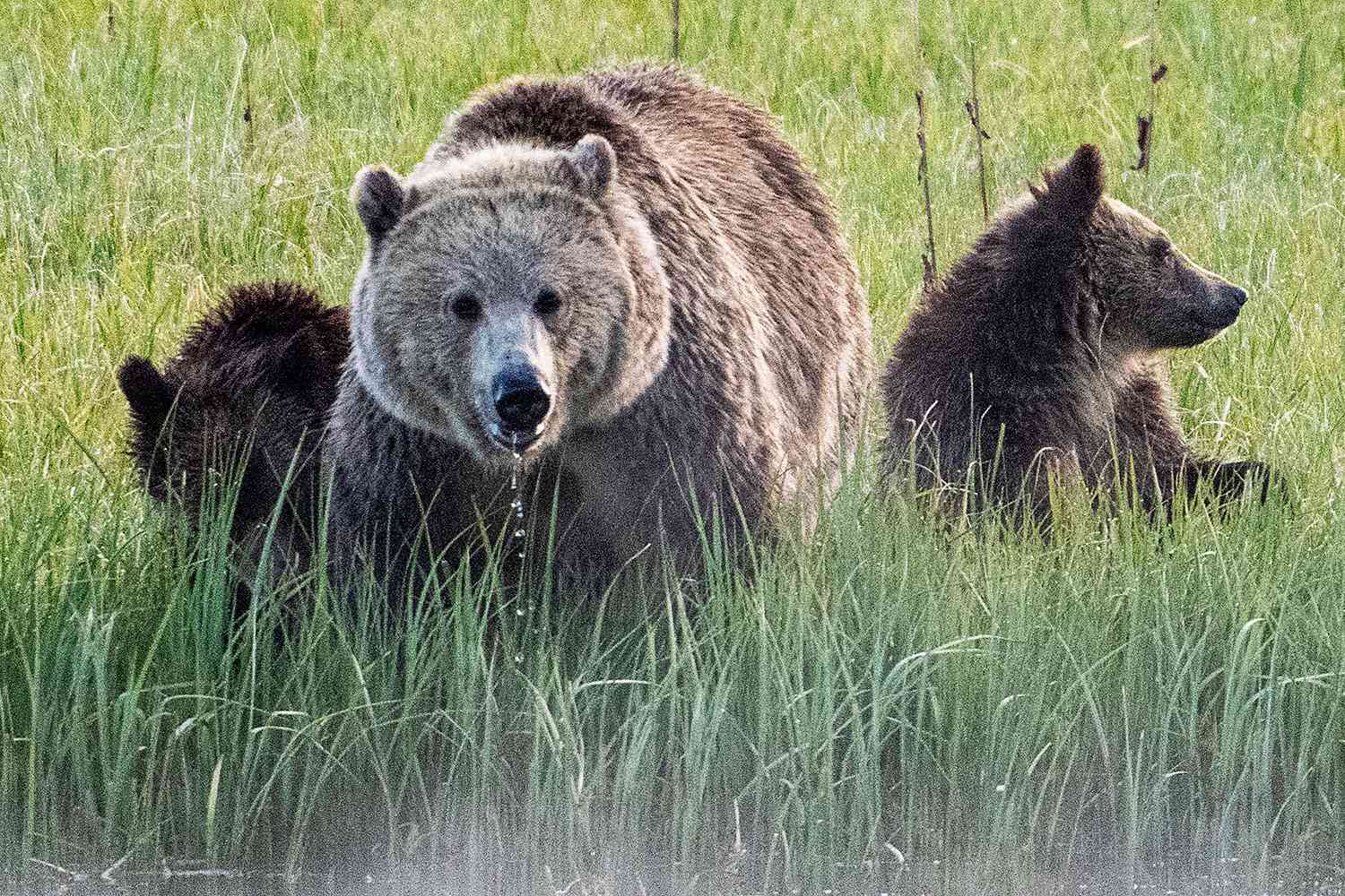 À Yellowstone, il existe deux types d'ours, de grizzlis et d'ours noirs. Selon le parc, les Grizzlies ont une fourrure noire à blonde avec des conseils plus légers, peuvent être d'environ 3 pieds sur les épaules et les hommes peuvent peser entre 216 et 717 £. Les ours féminins pèsent généralement entre 200 et 428 £, et les Grizzlies ont une durée de vie d'environ 15 à 30 ans.