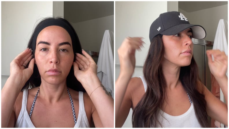 Testing the hack was honestly the easiest thing I’ve done all week. All I needed to try it out was a stretchy fabric headband (the kind that we used to wear as children but are suddenly having a resurgence) and my hat of choice. I used the Amazon Sport Headbands ($8) in black because the color matched not only my hair but the shade of the hat I was wearing.