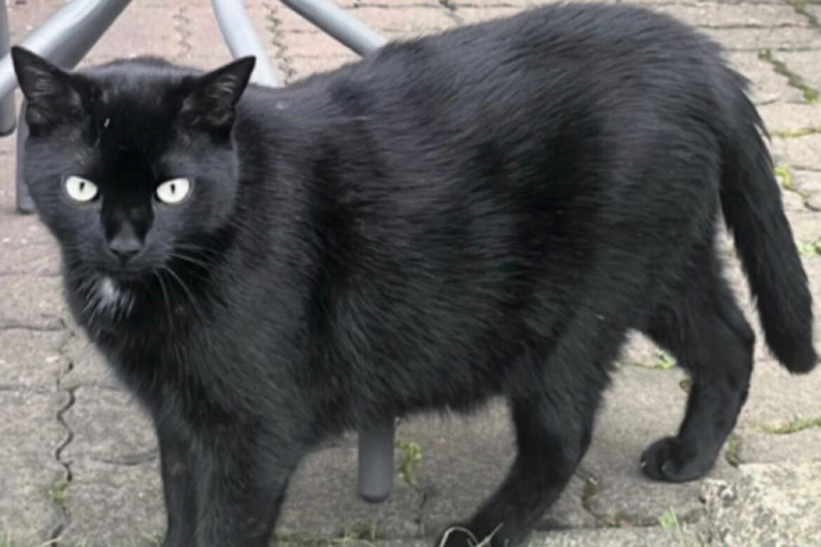 Nero, qui a une tache blanche sur la poitrine et sur les yeux verts clairs, manquait dans la ville d'Erlangen selon le socket.