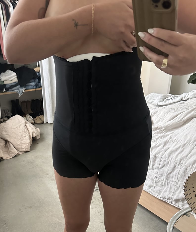 The second day post-shower I had also scheduled my first lymphatic drainage massage with celebrity-loved Brazilian masseuse Shirlei Silva, the owner of Shila Beauty Center in Beverly Hills. Honestly, I was pretty anxious going into it — I couldn’t imagine anyone touching me at this point in the process, let alone massaging my stomach. (I want to note that Dr. Rollins doesn’t recommend lymphatic drainage massages and it’s not part of the AirSculpt protocol, but my surgeon recommended them twice a week for the first few weeks, starting as soon as 48 hours after surgery and I decided to take his advice.) Luckily, Silva — who is responsible for the contoured bodies of celebs like Kaia Gerber, Emily Ratajkowski, and Jodie Turner-Smith — made me feel completely at ease, and in fact it ended up being quite soothing. She avoided the breast area completely.