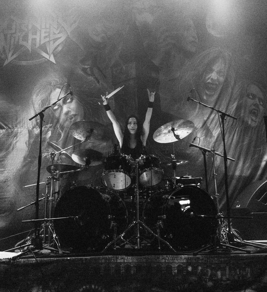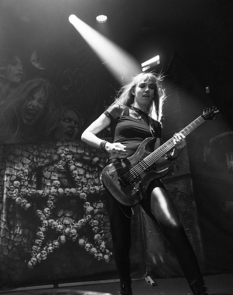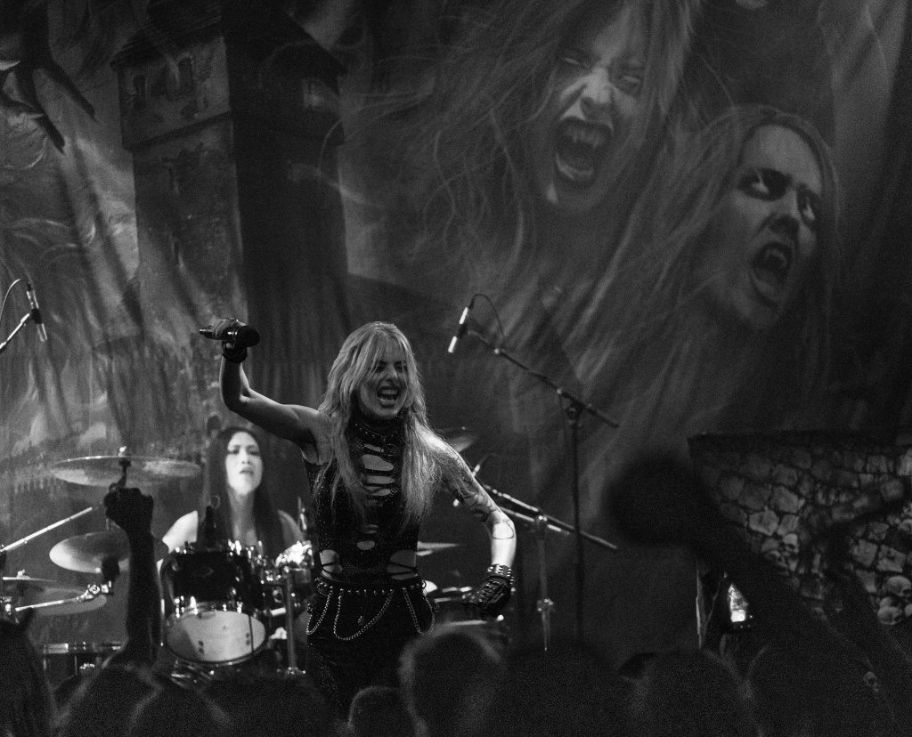 Les sorcières brûlantes ont été formées par le guitariste rythmique Romana Kalkuhl, le groupe entre dans la scène avec une énergie auto-confiante et bien-introduite. Jeanine Grobs Bass Lignes tonna sous la surface, tandis que Lala Frischknecht a le temps avec des tambours rapides et ciblés. Courtney Cox, l'ajout le plus récent au groupe de la guitare principale, conduit des solos mélodiques nets avec finesse. Mais c'est Laura Guldemond qui détient les changements de voix du centre entre les notes hautes pénétrantes et les grognements à grains grossiers, qui sont justifiés dans le théâtre du métal des années 80, mais sont livrés avec l'urgence moderne.